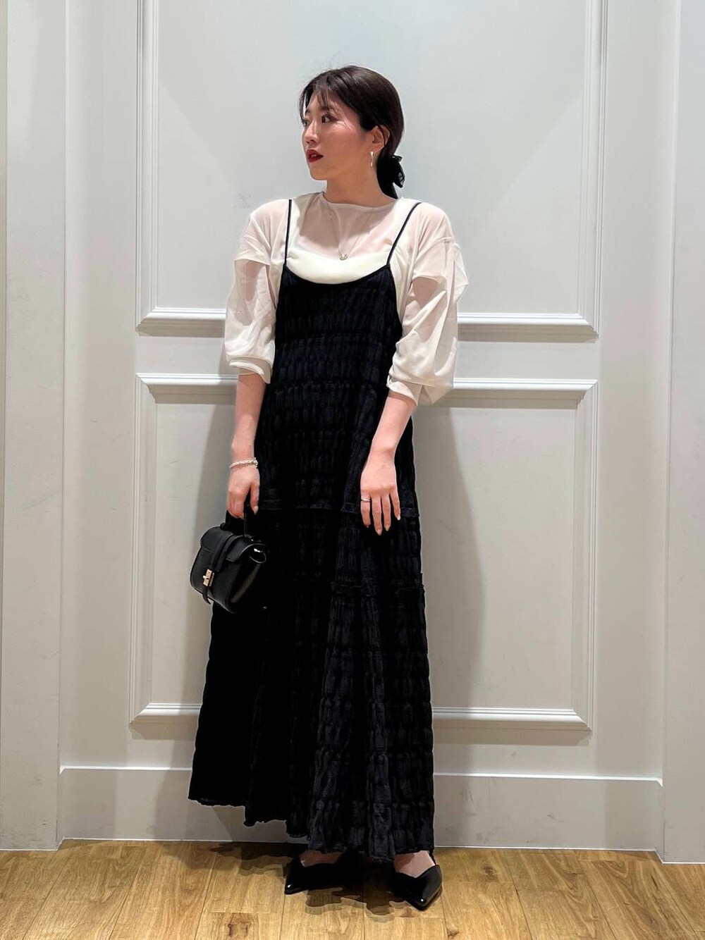 maho(apart by lowry ルクアイーレ)のワンピース「フリルティアードキャミワンピース」を使ったコーディネート