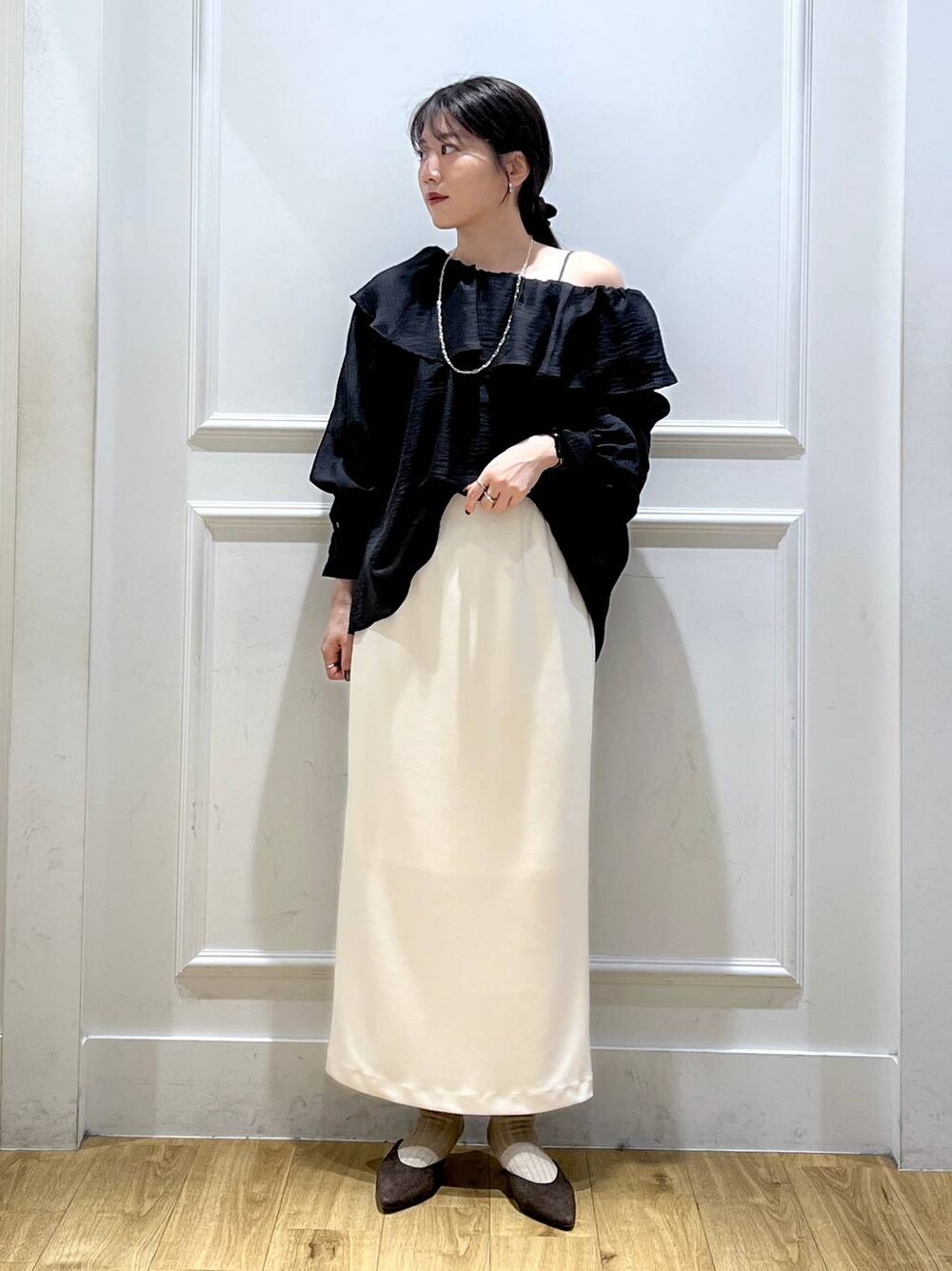 【ブラウス】 涼しくなったこの時期にぴったりのブラウス オフショルにもなるので着回し力も高い! カーディガンやジャケットに合わせてフリルを出してあげてもおしゃれ! 【スカート】 Mサイズ シンプルなデザインで着回し力◎ お仕事使いにもかなりおすすめで、素材もかなりしっかりしています!