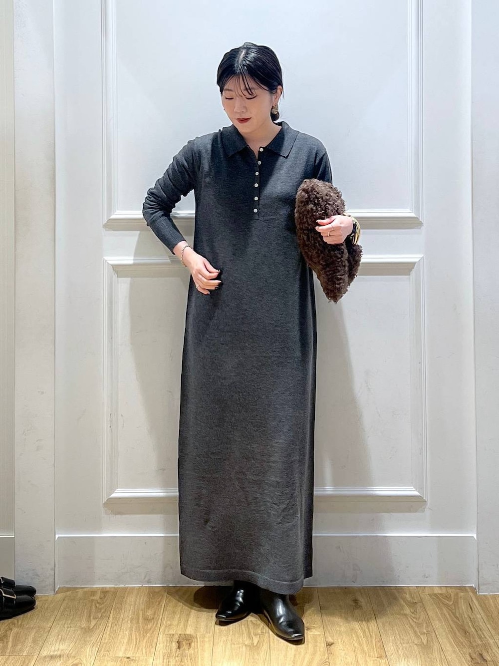 maho(apart by lowry ルクアイーレ)のワンピース「ポロニットワンピース」を使ったコーディネート