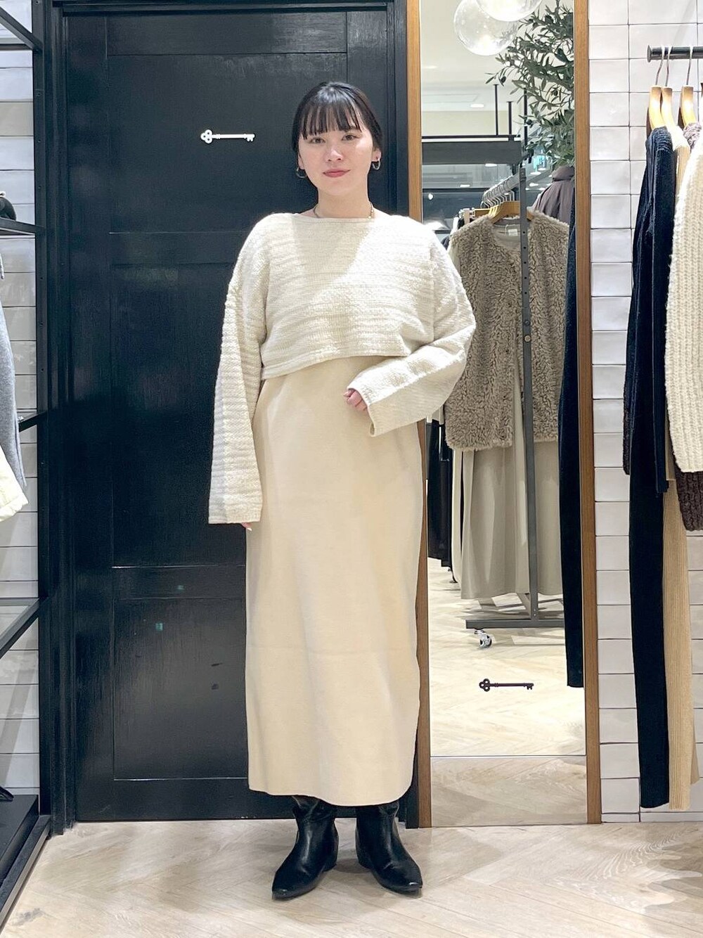 さち(apart by lowrys 大宮ルミネ)のワンピース「ツィード2Pニットワンピース」を使ったコーディネート