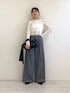 石岡真美さんとのコラボ第三弾 タック入りのワイドパンツはハンサムな印象でお召しいただけます。 サラッと厚すぎないお素材でボディラインも あまりひろわずお召しいただけます。