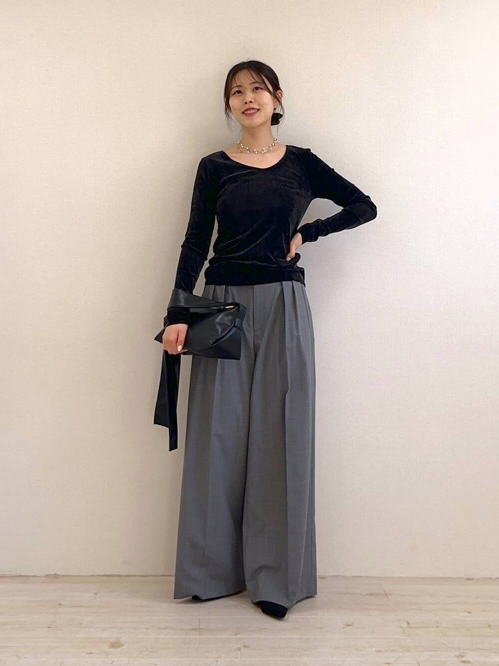 石岡真美さんとのコラボ第三弾 タック入りのワイドパンツはハンサムな印象でお召しいただけます。 サラッと厚すぎないお素材でボディラインも あまりひろわずお召しいただけます。