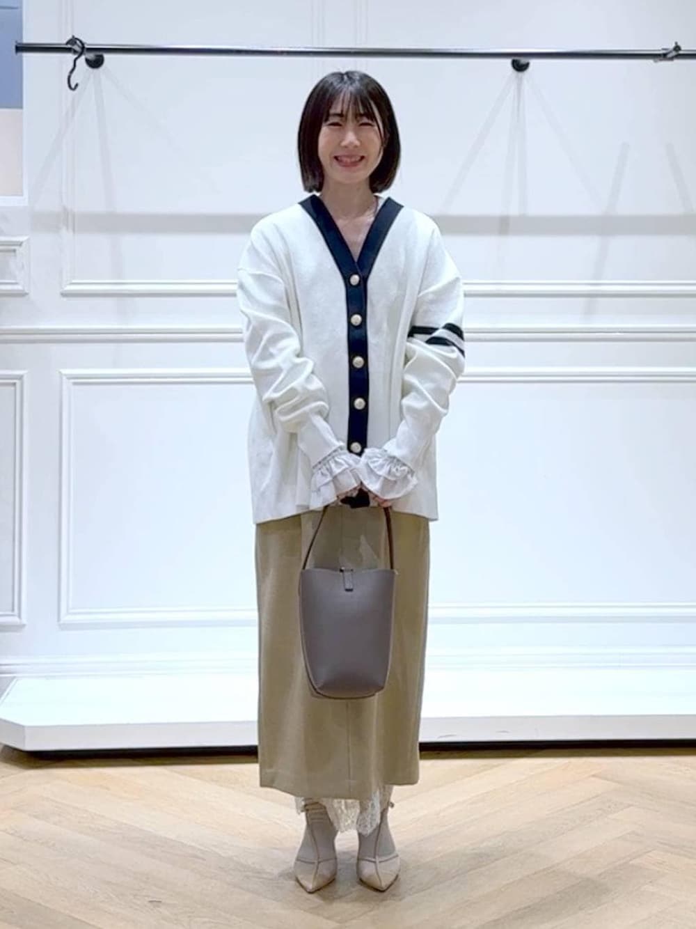 ⭐各アイテムのおすすめポイント  ̄ ̄ ̄ ̄ ̄ ̄ ̄ ̄ ̄ ̄ ̄ ̄ ̄ ̄ ̄ ̄ ̄ 【トップス】 立体感見えしてきるだけでおしゃれな着こなしにしてくれるカーディガン✨ 金ボタンなので、カジュアルダウンしたくない大人女子にぴったり◎ ヒップが隠れる安心感も◎ 【ボトムス】 レースつきのスカート✨ 履くだけで華やかさがあり、気分も上がりそうです^ ^ 同素材のジャケットと合わせてセットアップコーデも、おすすめです!