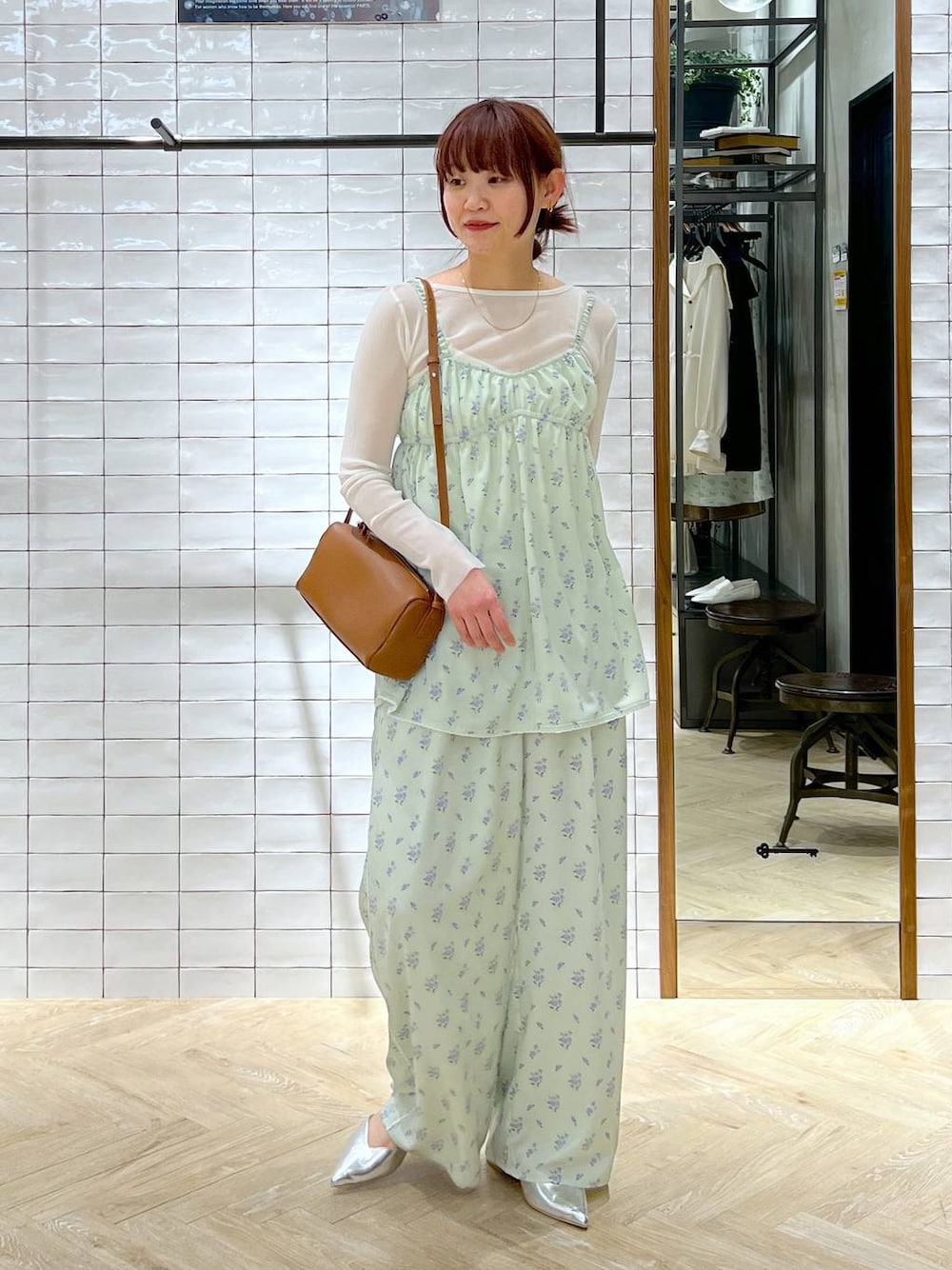【ベロアトップス】 ・柔らかい ・シアー ・お手入れ楽 とても柔らかくて着心地が楽です。 お洗濯後もよれずにキレイな状態を保っています。 透けるのですが個人的にはいやらしくない程度だと思っています! 1枚あると本当に便利です🥺 【インナー】 ・ゆったり ・柔らかい 薄手のトップスのインナーとして着るのには少し心許ない印象です>< 重ね着する時や薄すぎないトップスの時に着用しています! 【キャミ】(セットアップ対応) パンツとキャミは同じ素材です! ・柔らかい ・少し艶感あり 胸下のゴムが柔らかく着心地が楽です✨ 【パンツ】(セットアップ対応) ・ゆったり ・ウエスト総ゴム ウエストのゴムが柔らかく楽なはきごこちです✨ 丈は長すぎない丈なのでズルッと履きたい時は腰履きがおすすめです。 【パンプス】 普段24センチでどちらのサイズもはけますが、38の方がゆるくはけるので好みです✨ 足の幅が狭い方は37でもいいかもしれません。 24.5センチの方は38がおすすめです! 【ピアス】 ・軽い ・さびない 実物は公式画像よりマットな質感です。 アクセサリーは帰宅後すぐに外したいタイプですがとても軽いのでずっとつけていられます。 数年前から毎日のように着用していますが全く錆びていません。 【バッグ】 ・軽い ・内ポケットが2つある とにかく軽いので持ちやすいです。 500ミリのペットボトルが横向きに入ります✨