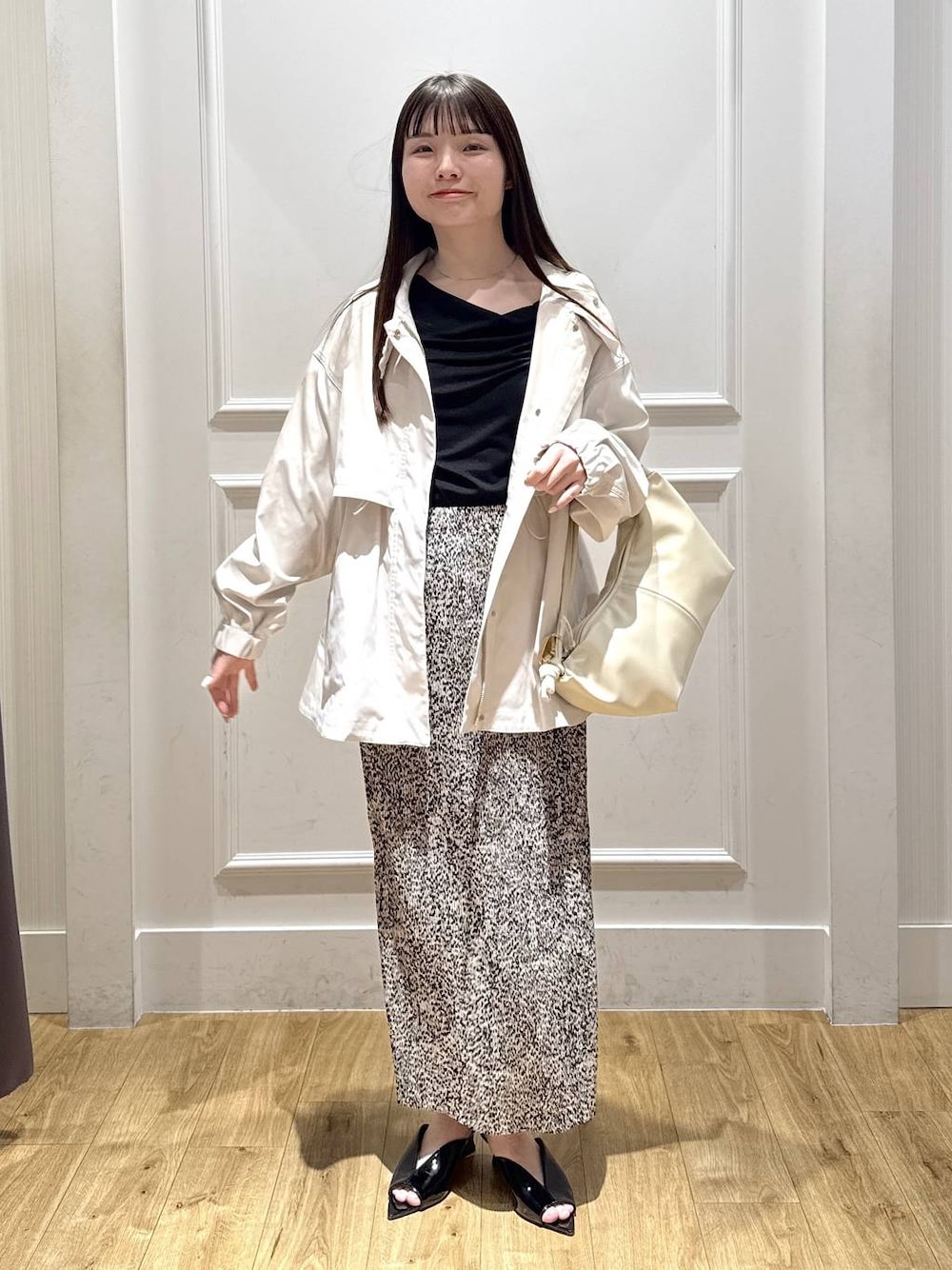 アウター→ウエストを絞って着られる春のアウターです! 撥水加工もあり雨の日も安心♪ お尻もすっぽり隠れる安心なシルエットです! スカート→ウエストゴムで楽ちんスカート 伸びる素材なので、自転車にも乗れるくらい動きやすい! 妊婦さんにも人気のスカートです、 156cmだとSでもFでも大丈夫です! 足首見える方がよければSサイズがおすすめです。 ┈┈┈┈┈┈┈┈┈┈┈┈┈┈┈┈┈┈┈┈┈┈┈ コーディネートが参考になった方は ⇩下の "使用アイテム" の所から選択して カートに入れて貰えると嬉しいです◎