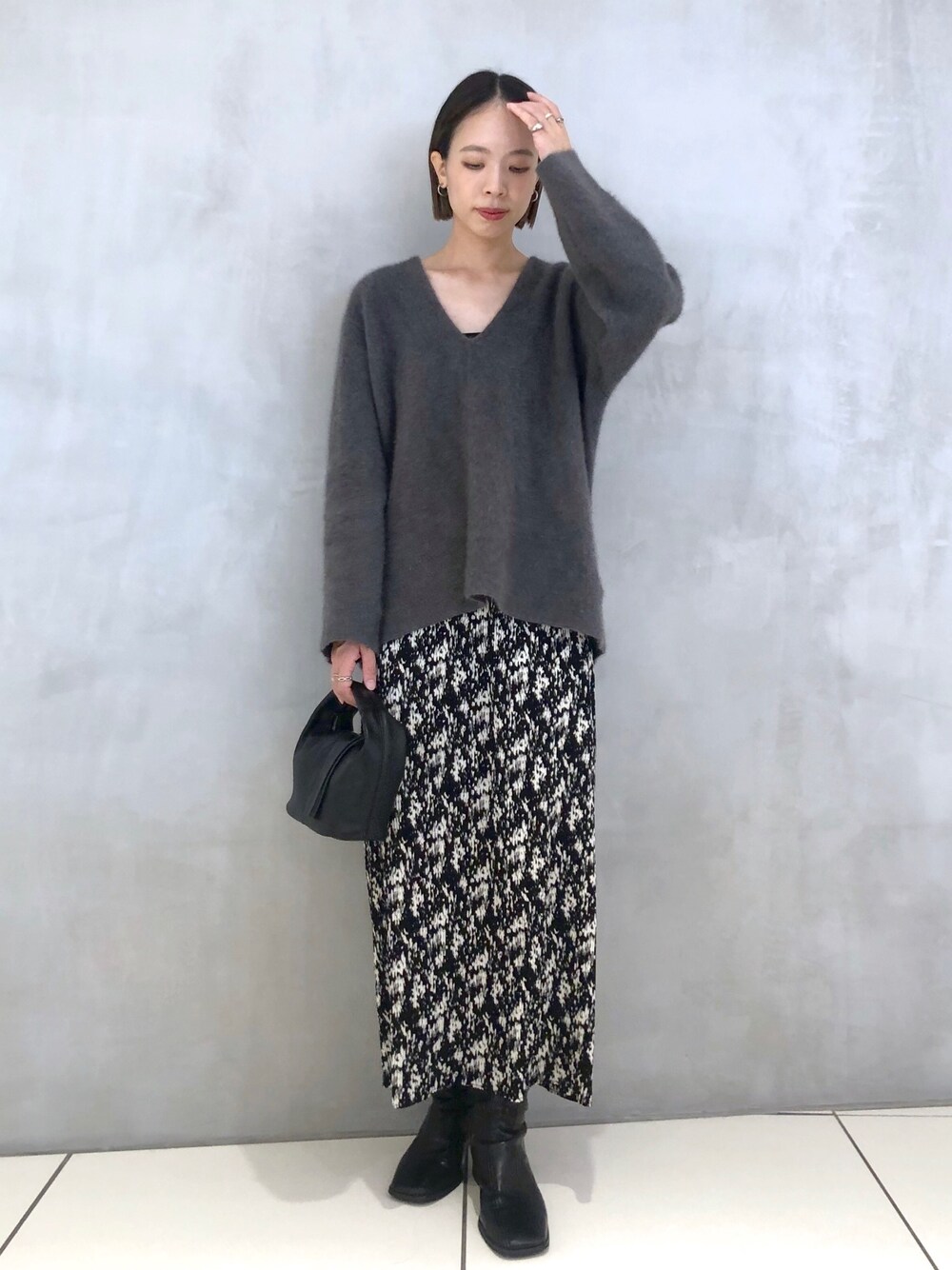 《リアルバイコーデ》 ウエストゴムで履き心地抜群のスカートをメインに。 ストレッチが効いているので 子供と一緒の時も動きやすいスカートコーデです◎ 大好きなモノトーンの合わせですが シンプルになりすぎないように 柄とラクーンニットでお洒落見えする組み合わせにしました! ラクーンニットは洗濯機でお洗濯可能なのも嬉しいポイントです!