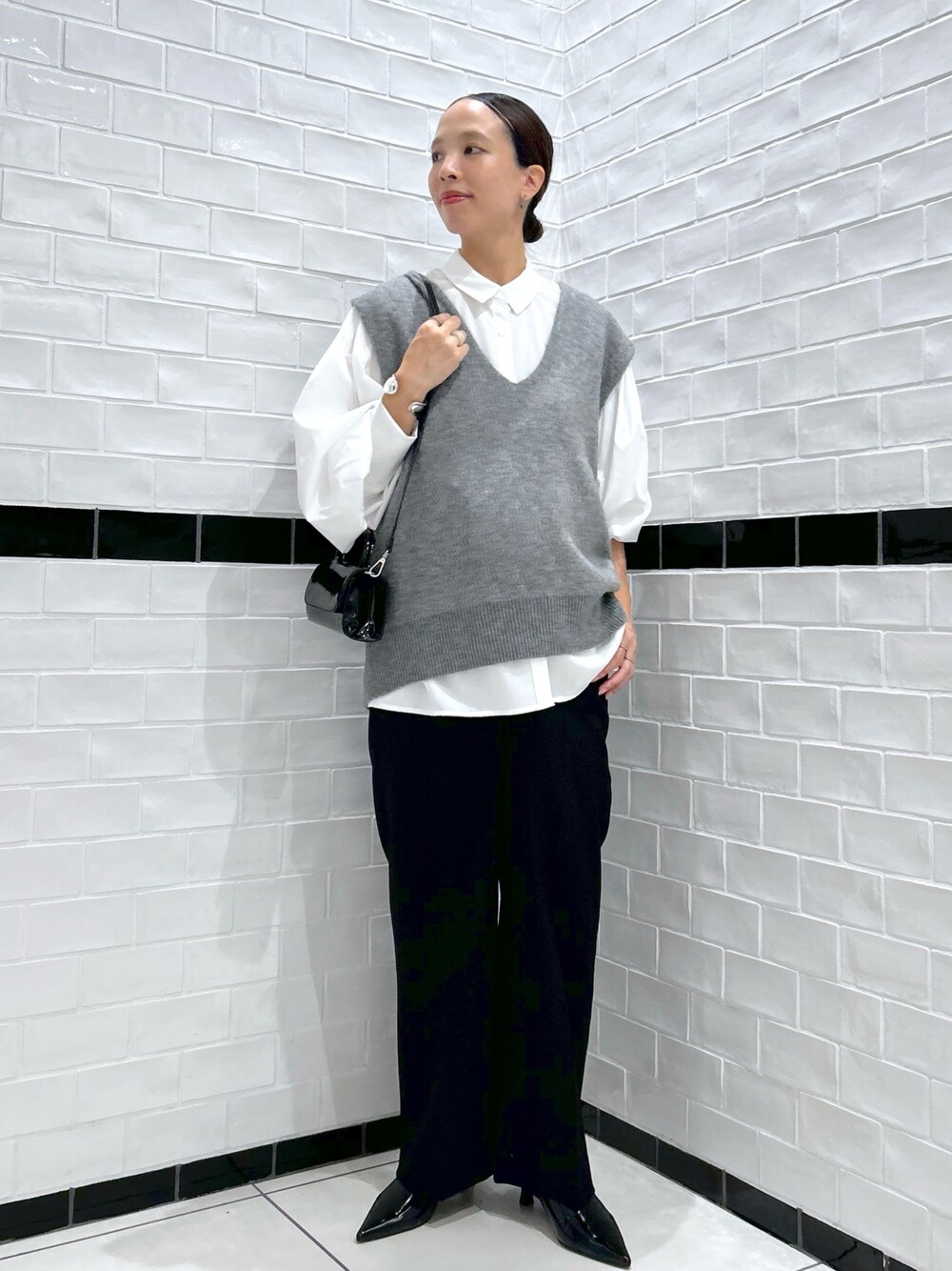 《保護者会コーデ》 保護者会のコーデには スラックスと、シャツできちんと感を◎ 堅い印象にならないように ニットベストと合わせて柔らかい印象に。