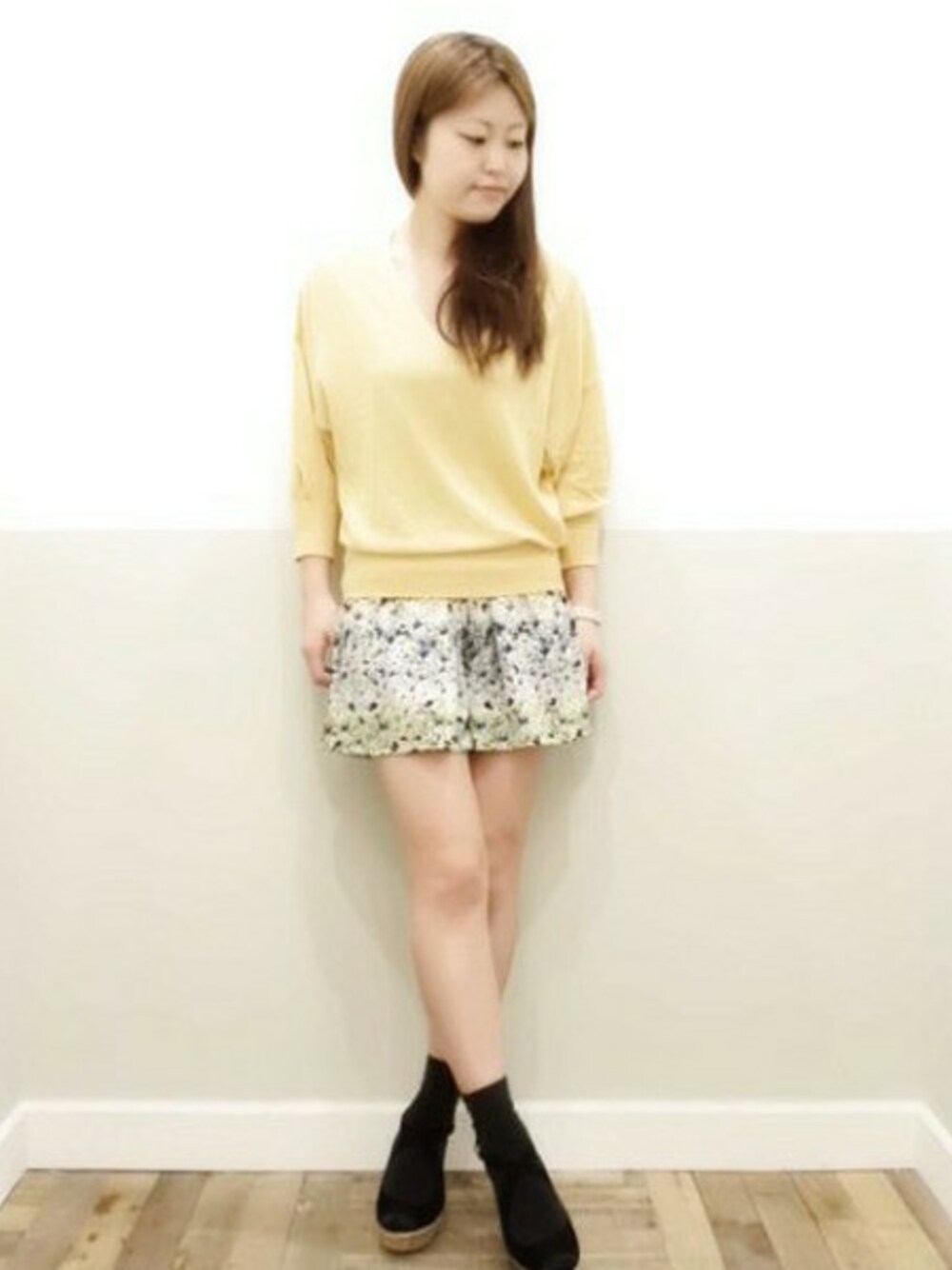 春らしい明るいカラーのコーディネートにしました。甘めなコーディネートなので足元はあえて黒で落ち着かせています。