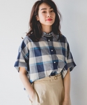 袖の短いアイテムはシャツと合わせると安心💖 ホワイト×ブルーで爽やかなコーデにしました🐠