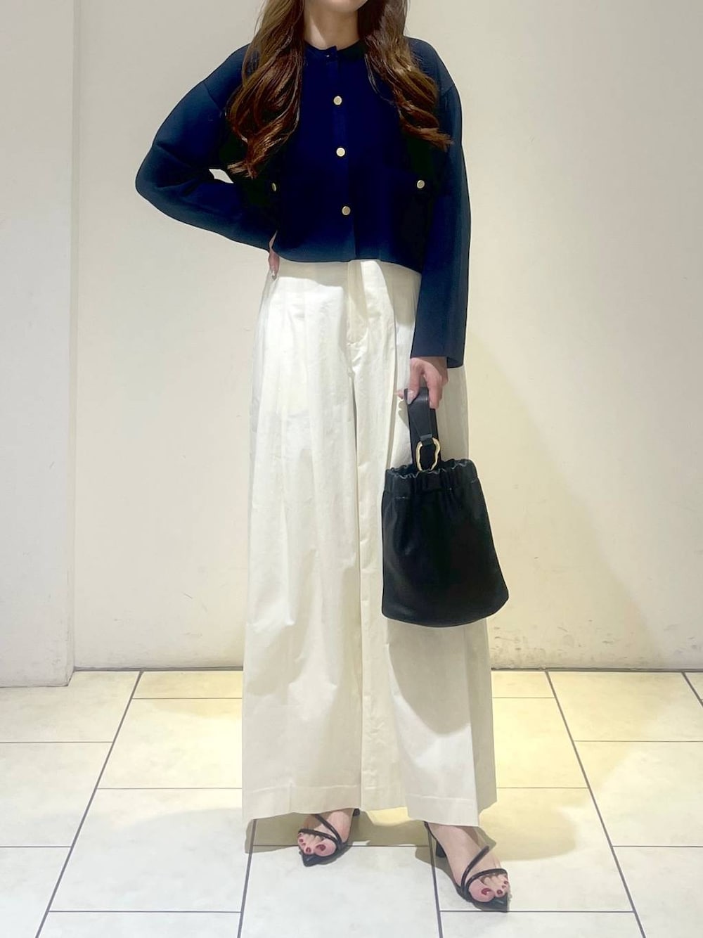 金ボタンカーディガンは 短丈なのですっきり着れます♡