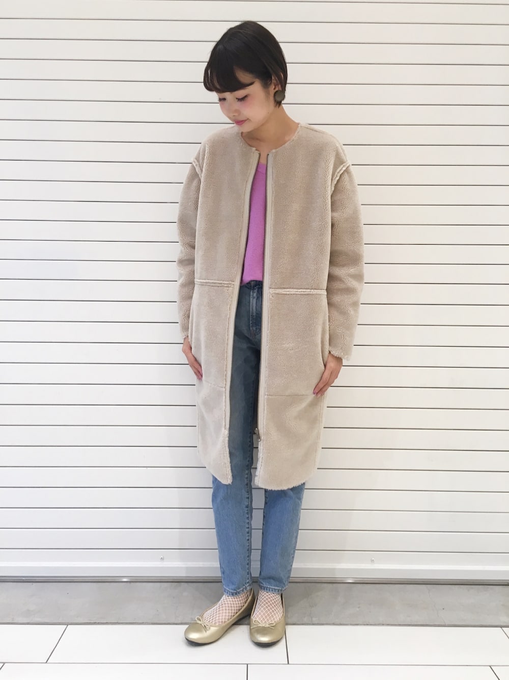 coco(apart by lowrys ルミネ池袋)のその他アウター「Fスエードノーカラーコート 730067 」を使ったコーディネート
