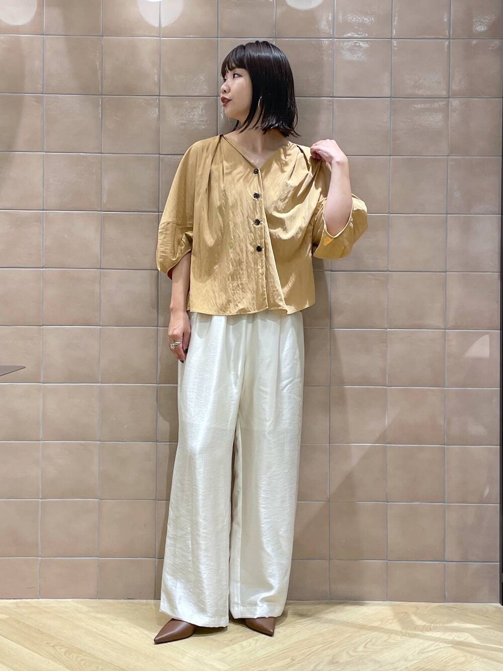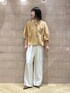 ドルマンスリーブとカラーが可愛いブラウス。 楽ちんおしゃれ見えのワイドパンツと合わせました。