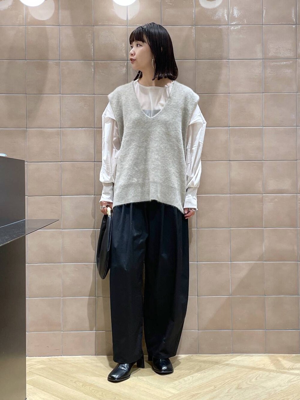 今すぐ着やすいコーデ。 ふわふわベストが主役!