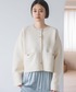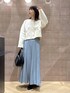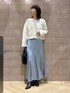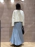 短丈カーディガン×マーメイドスカートのスタイルアップコーデ。 暗くなりやすい秋にナチュラル×ブルーはおすすめ!