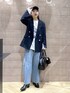 ジャケットをロゴTとキャップ、デニムでカジュアルコーデ!