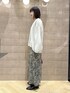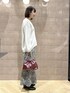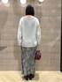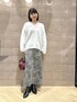 レースとドッキングで一枚で決まるニット! すっきりVネックでも腰回りはたぽんとなるゆとり、腰回りもカバーできて着痩せが叶います! すっきり見えで楽ちんな花柄スカートもモノトーンなので大人ぽく合わせられます!