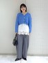 春はカラーが着たい🩵 短丈ニットなのでレースキャミをレイヤードして今年らしいスタイルに!