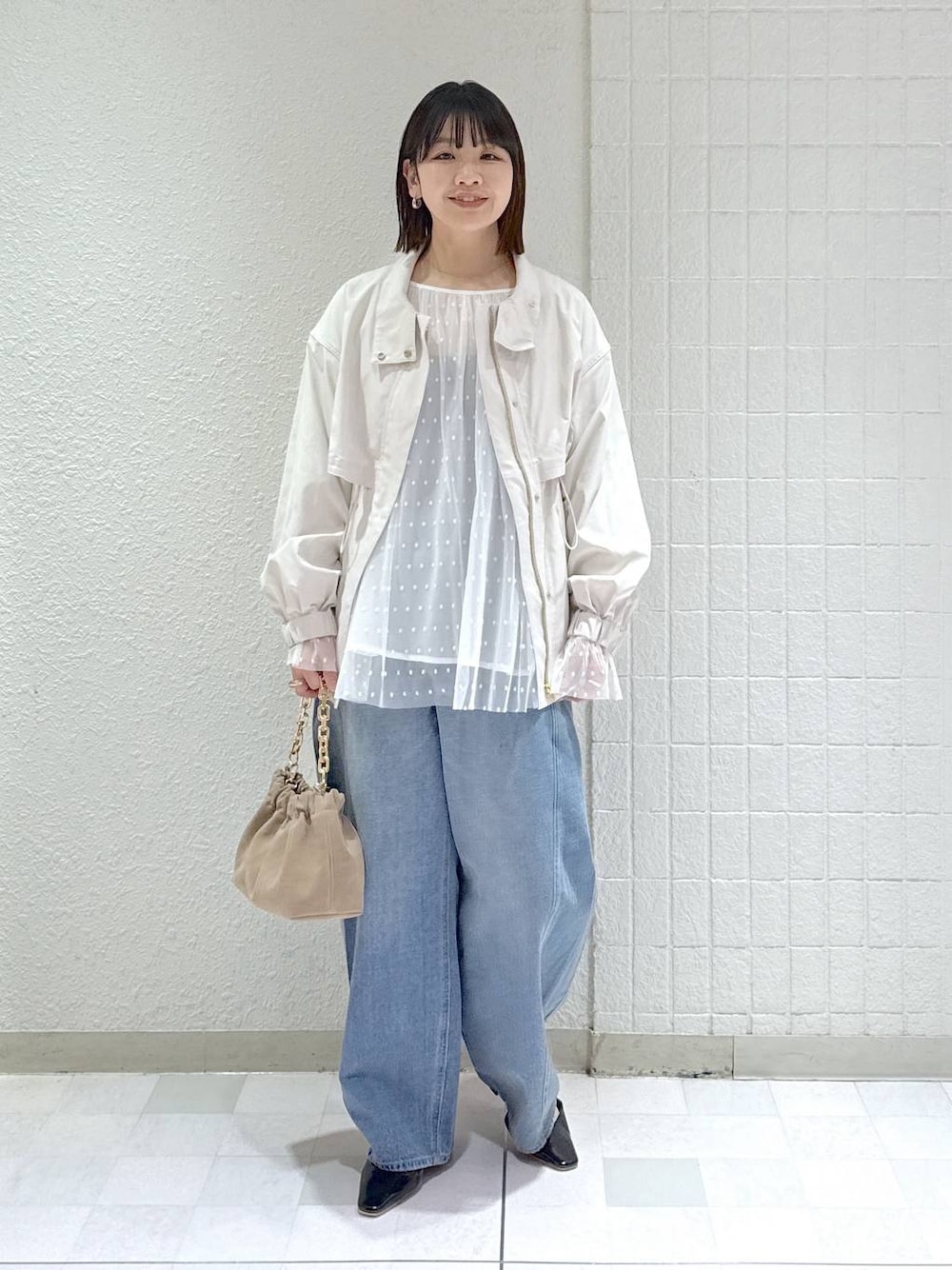 チュールの甘めブラウスをブルゾンでカジュアルにコーデ!