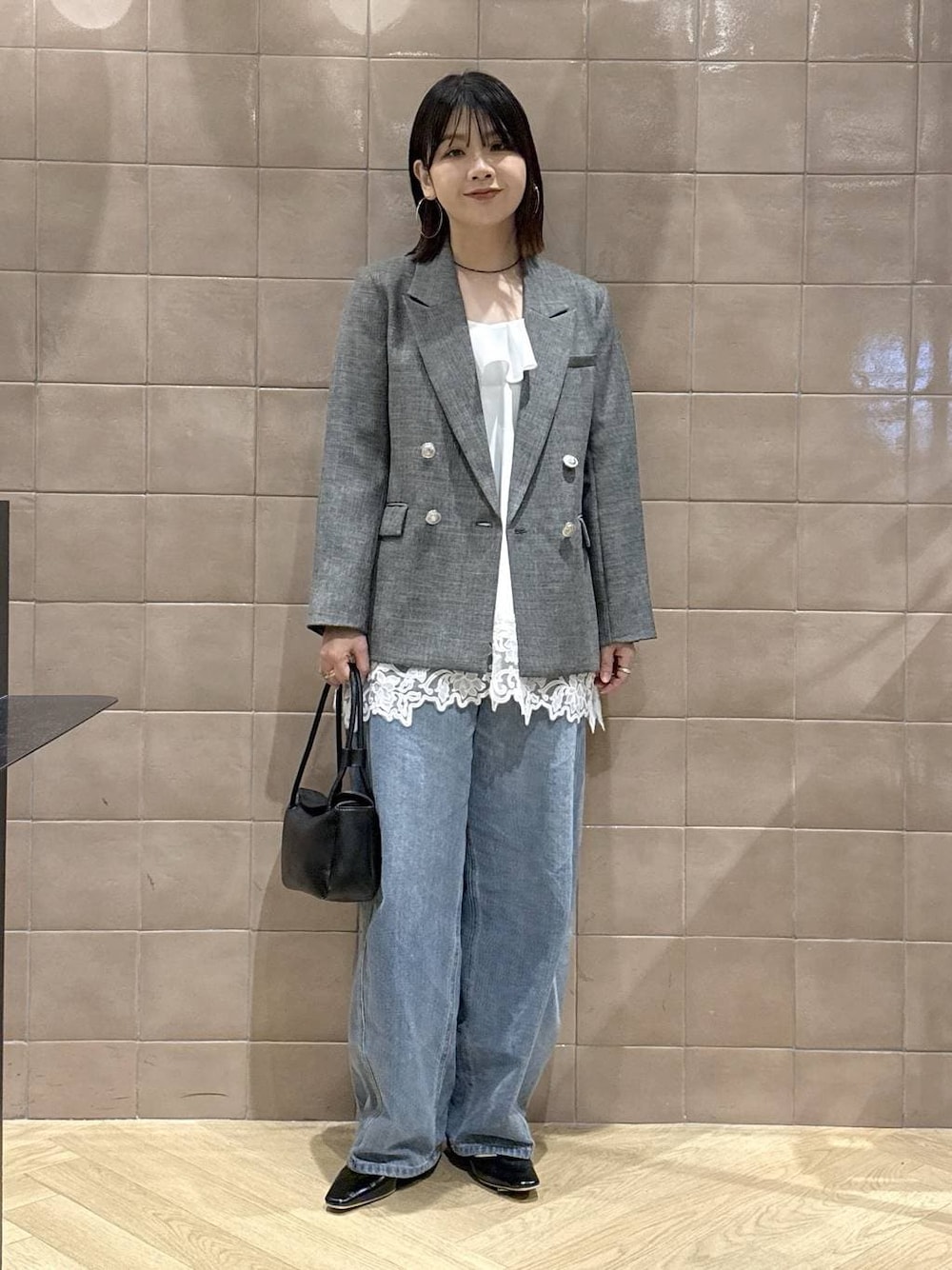 レース×ジャケットのお気に入りコーデ♡ デニムとハンサムジャケットで甘さ抑えて ジャケットはSサイズ着用しています!
