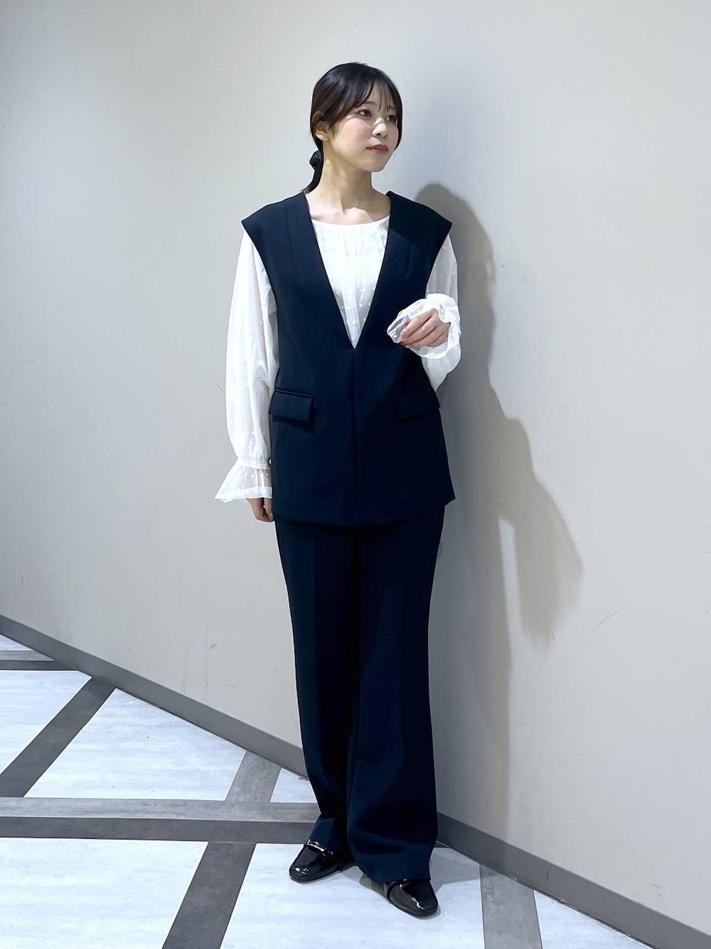 セレモニー、フォーマルにちょっと個性をプラス🤏🏼 ドットのブラウスが柔らかい印象に♡ ワイドパンツを穿き慣れてる私には Sサイズが窮屈に感じたのでMにしました! ブラウスはチュールなのでおしゃれで 優しい印象になれます♪