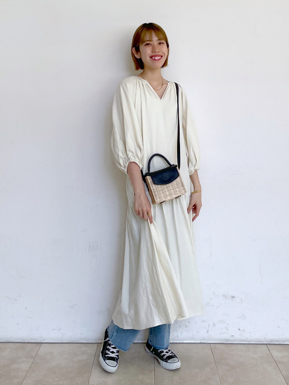 エミリ(apart by lowrys ルミネ町田)のワンピース「ティアードソデパフワンピース」を使ったコーディネート