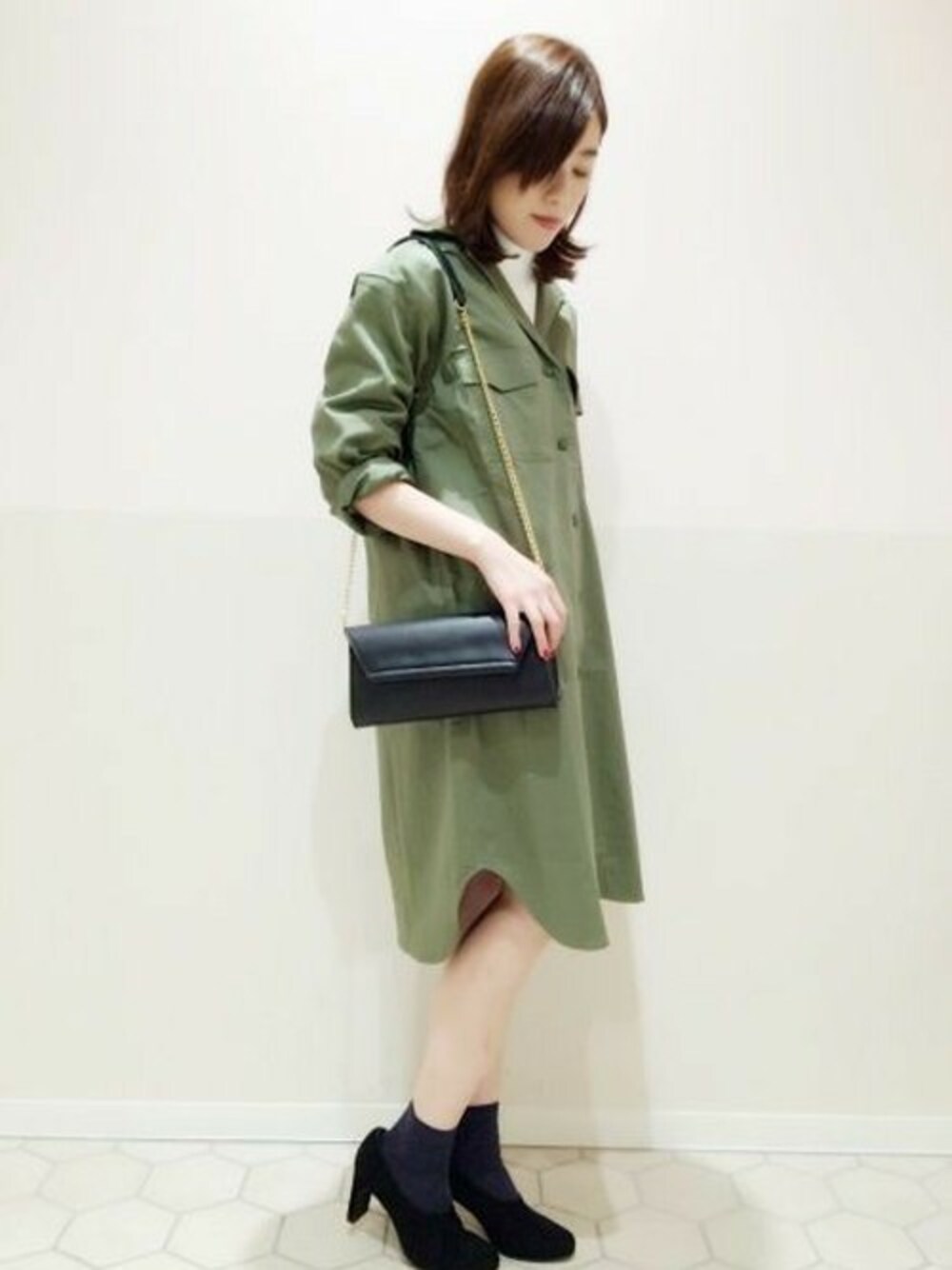 エミリ(apart by lowrys ルミネ町田)のワンピース「C/PUミリタリーシャツワンピース 569884」を使ったコーディネート