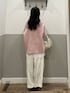【ニット】 ふわふわした肌あたりのラクーンニット♡ 爽やかなピンクは甘すぎず大人女性にもおすすめ。 着丈はやや長め、気になる腰周りをすっぽりと カバーしてくれて、前後2wayでたのしめます! 【キャミソール】 インナーで重ね着に使用しても外側でキャミもしても 着回しができるオシャレアイテム♡ レイヤードするだけで一気に今年らしく旬な印象に。 今期1着は持っておきたいアイテムです! 【パンツ】 落ち感のあるさらっと素材の楽ちんパンツ。 太すぎず細身すぎず身体のラインを拾いにくく、 ラフに履いていただきやすいパンツです。 いつもご覧頂き、ありがとうございます! ▷▶▷Instagram おすすめアイテムや日常のこと、投稿してます。 こちらもフォローして頂けると嬉しいです♡♡
