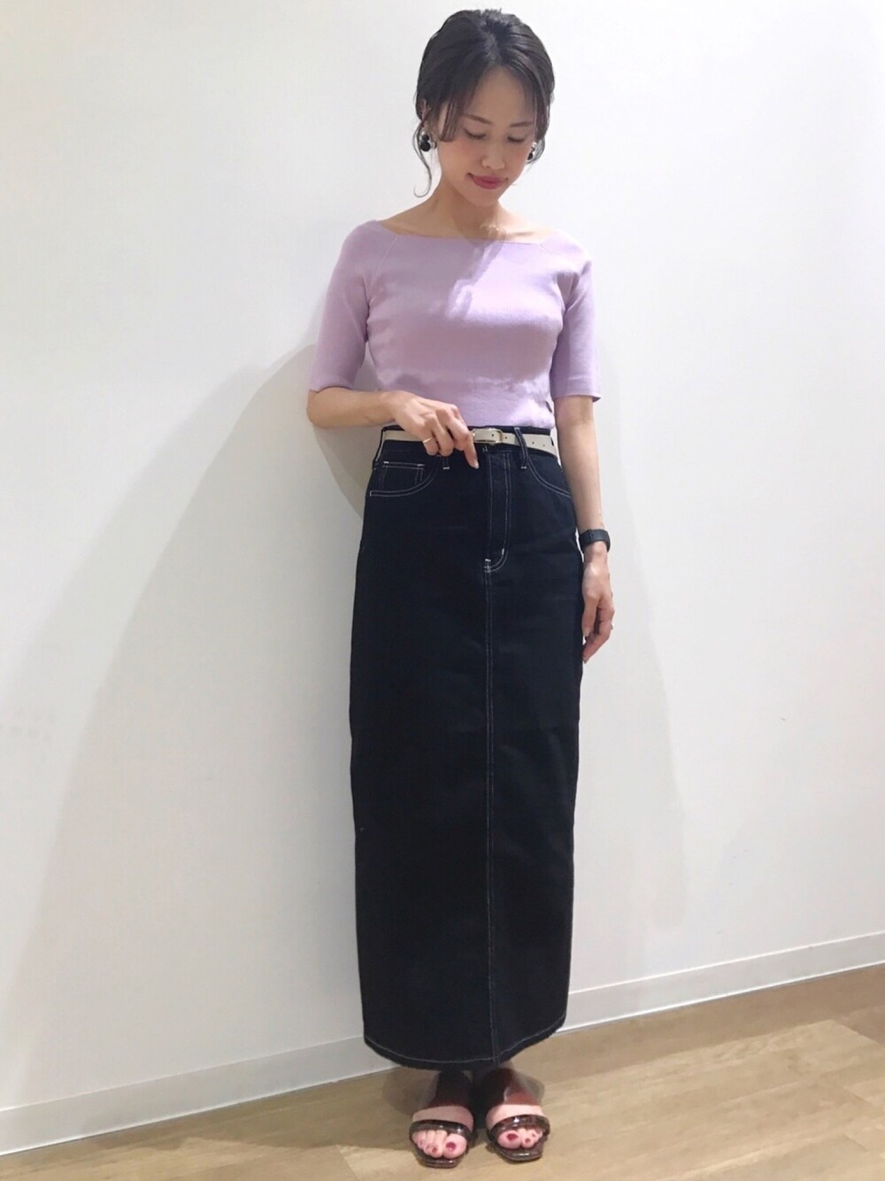 maru(apart by lowrys コトチカ京都)のデニムスカート「デニムロングタイトスカート 777268 」を使ったコーディネート