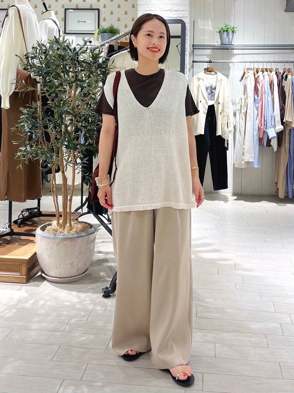 サラッと着心地の良いシアーTシャツにメッシュベストを重ねました♡ 夏にも暑苦しくないレイヤードスタイルです✨ ボトムはシルエットがキレイなイージーパンツ◎ ウエスト後ろ側がゴムなので楽ちんに着られます✨ ↓着用アイテムは以下から詳細確認、購入いただけます☺️