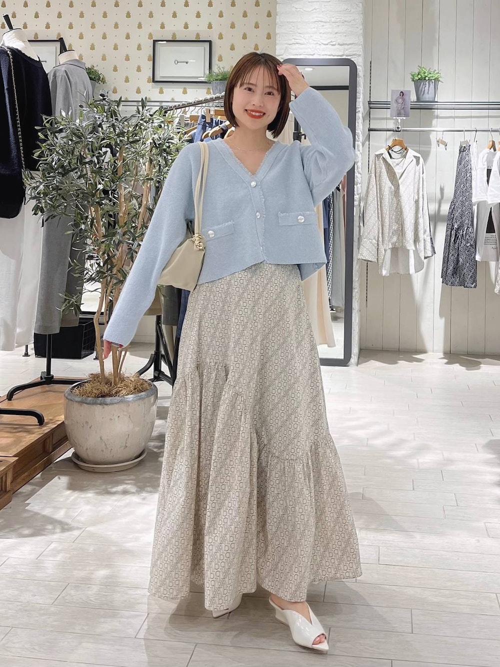 maru(apart by lowrys コトチカ京都)のカーディガン/ボレロ「ツイードVカーディガン」を使ったコーディネート