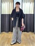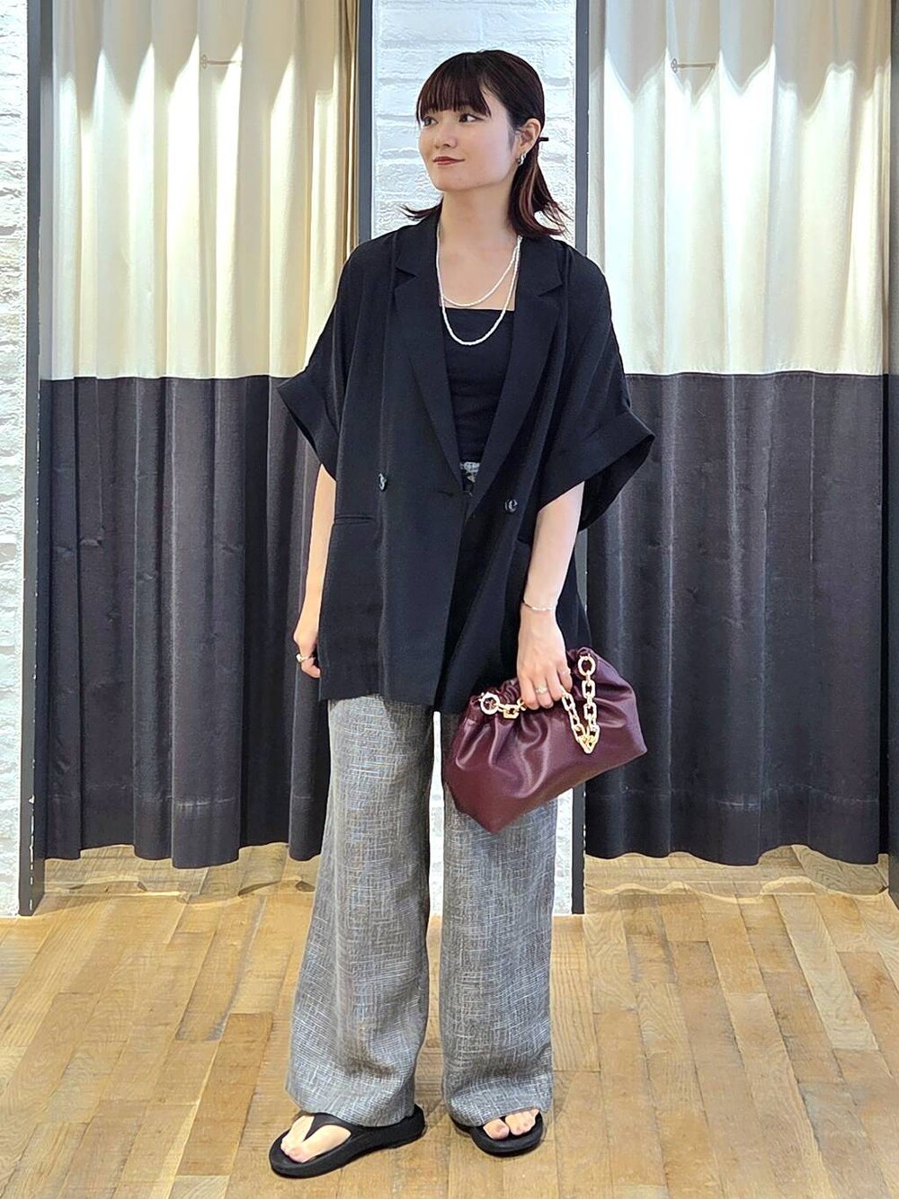 【スタイリングポイント】 ちょっぴりレディなジャケットコーデ 全体をモノトーンに、アクセントにバッグをプラス🍒 【タイプ】 〈骨格〉 ストレート 〈悩み〉 お腹周りやヒップのボリュームがあるため、 タイトシルエットに抵抗があります。 【サイズ感】 〈ジャケット〉 ゆったりオーバーサイズです 腰周りまで隠れる安心感◎ 〈パンツ〉 フリーサイズで少し長めでした 私はウエスト1回折って着用してます! 【素材感】 〈トップス〉 アセテートのサラッとした素材なので 真夏〜秋まで使えます! ほんのり透け感があるのもお洒落見えしてくれて◎ 〈パンツ〉 ツイード風のメッシュ素材です。 太ももあたりまで裏地付きなので 透け感なし&涼しい!快適です🍃