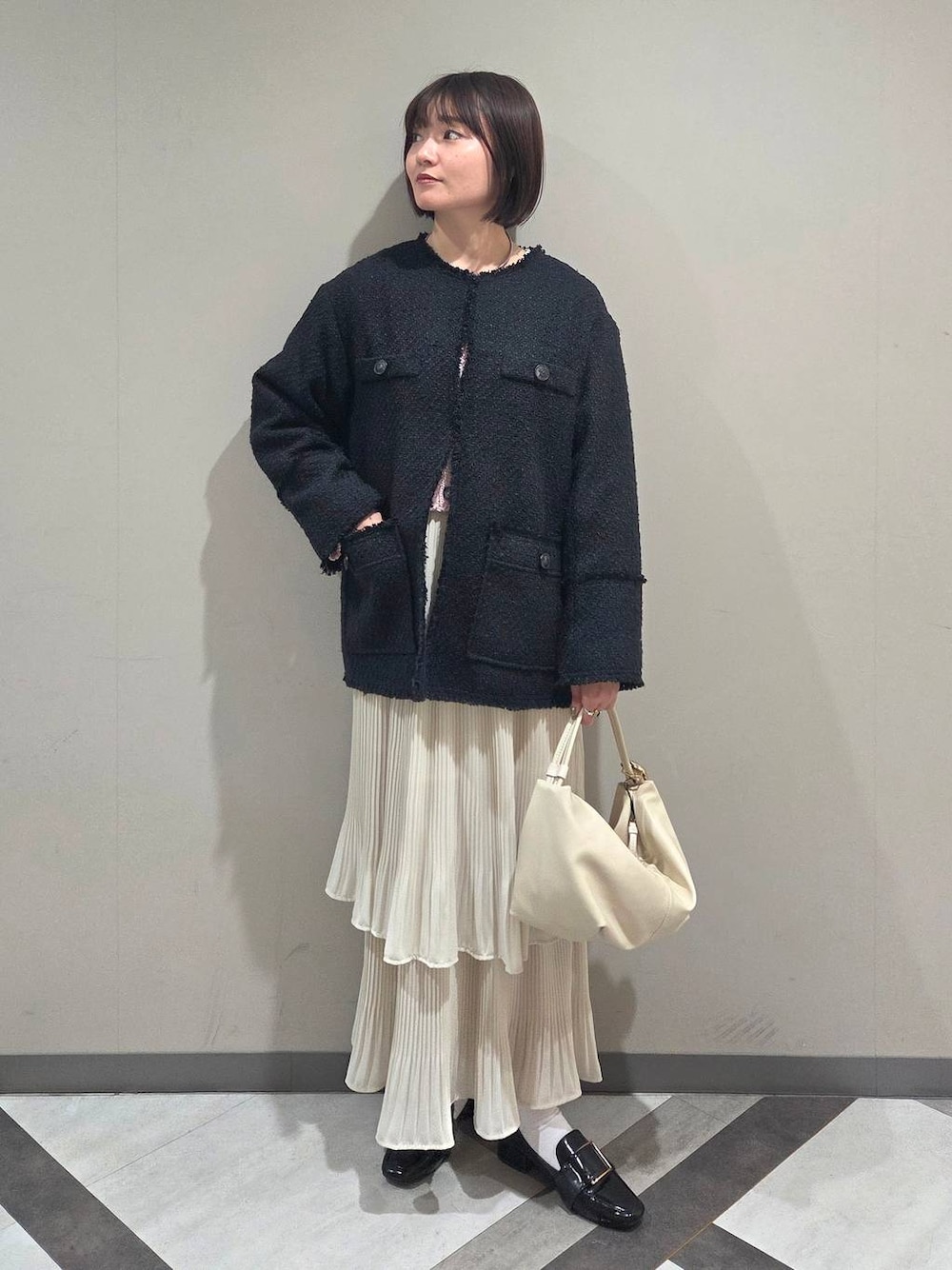 【スタイリングポイント】 オケージョンにも使えるツイードジャケット 甘めスカートと合わせて お出かけコーデにしました。 【タイプ】 ✔️骨格ストレート ✔️上半身にボリュームが出やすい ✔️お腹周りにゆとりが欲しい