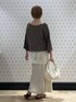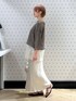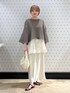 【トップス】 今時期から着れる6分袖のメッシュニット🎐 身幅や袖にゆとりがありつつも、腰骨くらいまでのやや短丈なので、バランスよく着ていただけます◎ あまり厚手ではなく、サラッと涼しげな着心地です! レースチュニックと合わせて、裾からレースを覗かせると更に可愛いです🤍 【ボトムス】Sサイズ サテンのツヤと裾のヒラっとした感じが女性らしいスカート。 履くだけで華やかで上品なイメージを演出できます✨ 腰回りはどうしてもシルエットが出やすいので、長め丈のトップス合わせがオススメです! 154cmでSサイズ着用、くるぶしが隠れるくらいの丈感でした◎