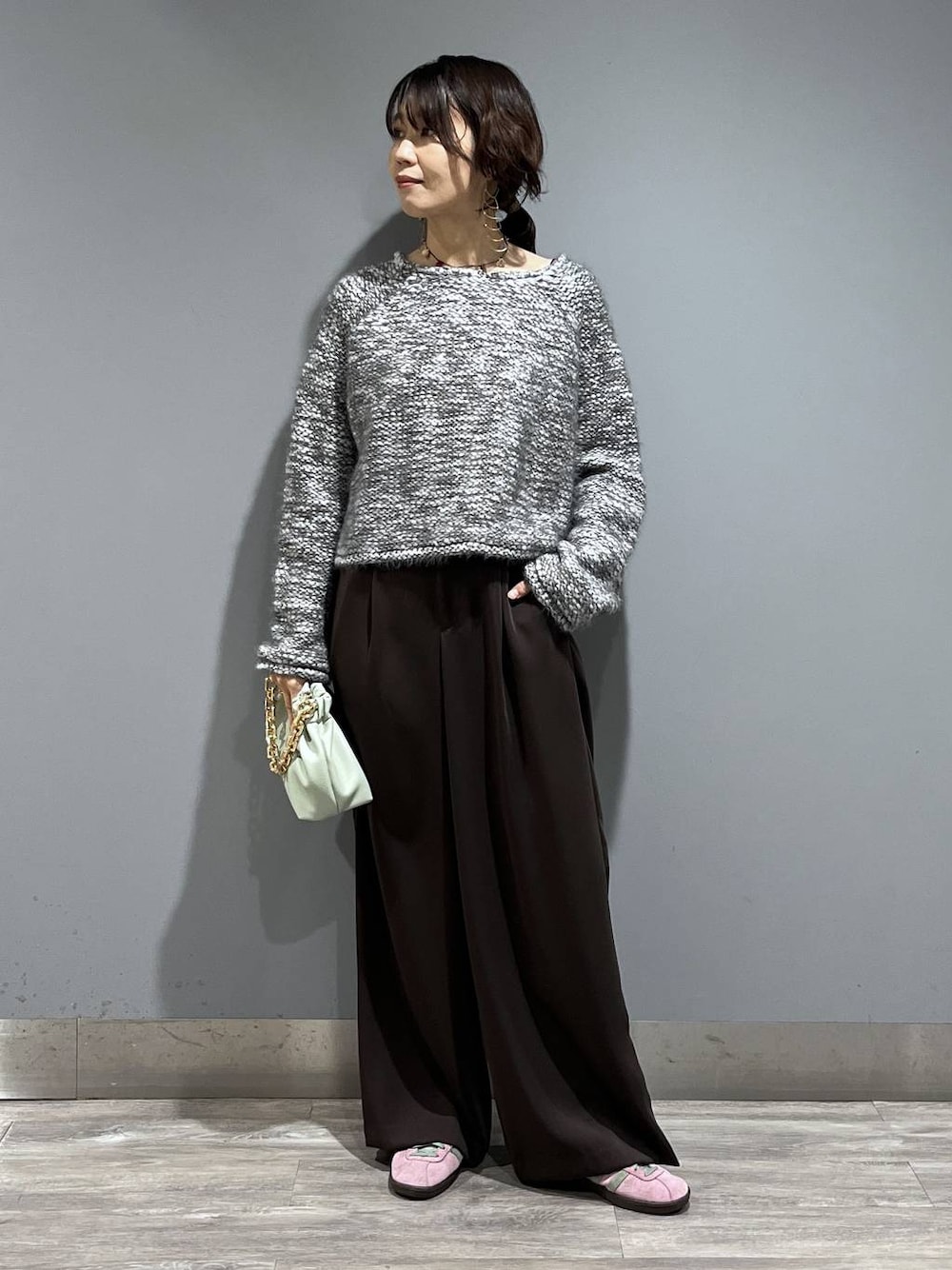 首周りがスッキリ見える、美シルエットなニット☺︎ ザックリしているのに華奢見えするので ゆるめのボトムとも相性◎です。 とても軽いので着心地も良く、着映えするのでオススメです。
