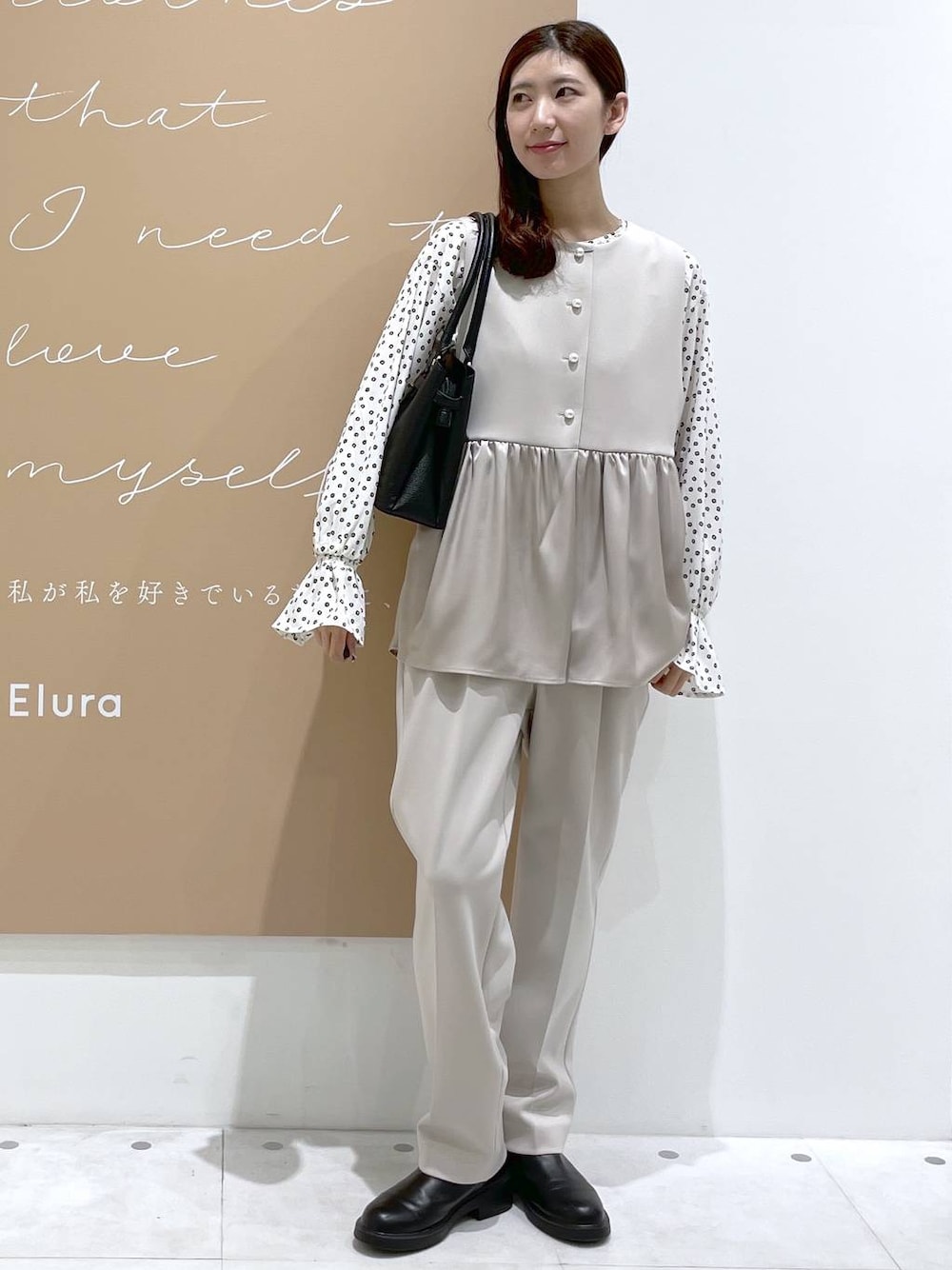 ご覧いただきありがとうございます😊 167cm骨格ウェーブ 上品なベージュのワントーンで やさしく華やぐ大人スタイル🤍 お仕事でもプライベートでも着られます👏🏻 切り替え位置が高めのトップスは、 自然に体型をカバーしつつ ヒップまわりも安心の着丈。 ブラウスの袖が程よいアクセントになり、 シンプルすぎないのもポイントです。 きれいめにも普段使いにも 幅広く活躍するおすすめコーデ◎