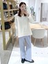 ご覧いただきありがとうございます😊 167cm骨格ウェーブ ホワイト×ライトブルーで 清潔感のある大人カジュアル🤍🩵 ゆったりシルエットのトップスは 体のラインを拾いにくく、 一枚で安心して着られるデザイン。 落ち感のあるパンツを合わせることで ラフになりすぎず、きれいめな印象に仕上がります。 お仕事にも普段使いにも おすすめのスタイリングです◎
