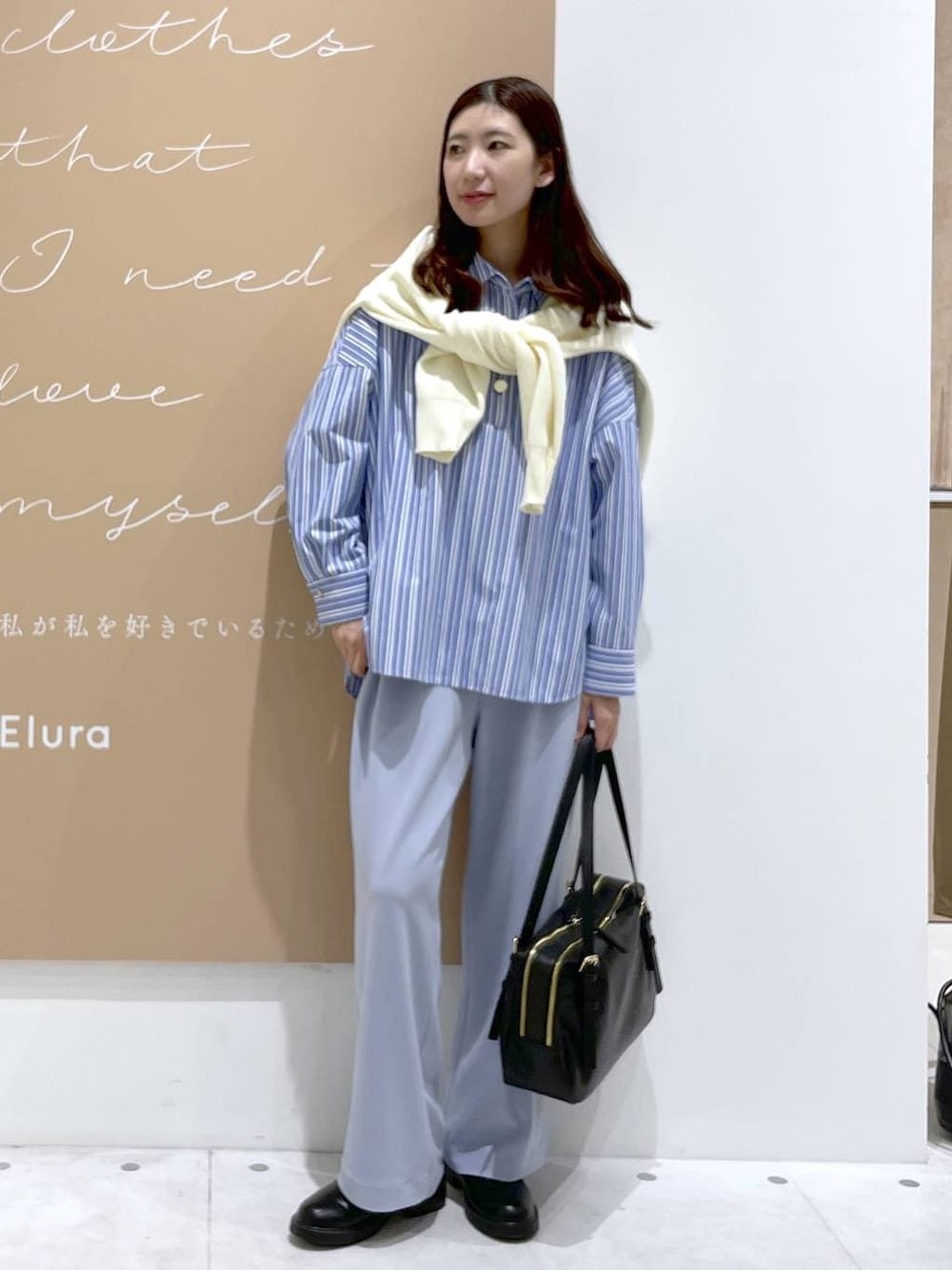 ご覧いただきありがとうございます😊 骨格ウェーブ167cmです! ゆったりシルエットのストライプシャツに ワイドパンツを合わせた、大人のリラックススタイル。 気になるお腹まわりやヒップラインを ふんわりカバーしながら、 ストライプで縦ラインをすっきり見せてくれます◎ 動きやすくて楽なのに、 きちんと感もある大人カジュアルです🎶 ぜひお店でもお待ちしております!