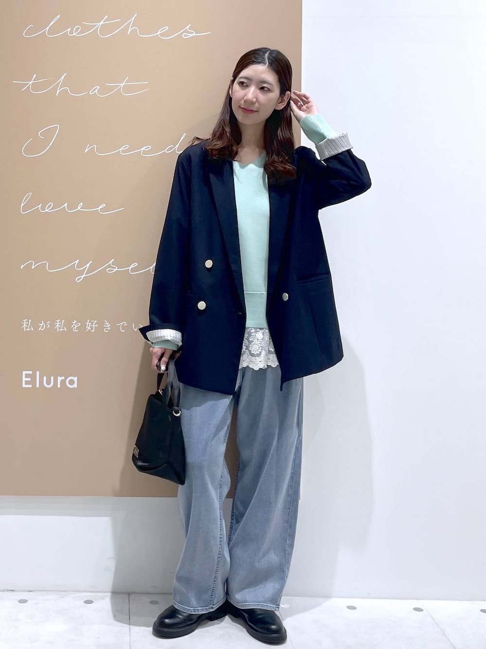 ご覧いただきありがとうございます😊 167cm骨格ウェーブ ゆるトップス×デニムでリラックスカジュアル✨ レースレイヤードでさりげない女性らしさもプラスしてます!! ミントカラーで軽やかに仕上げた、大人の抜け感コーデです。 春らしさ満載で可愛いです🌸 夜は肌寒いのでジャケットをプラス!
