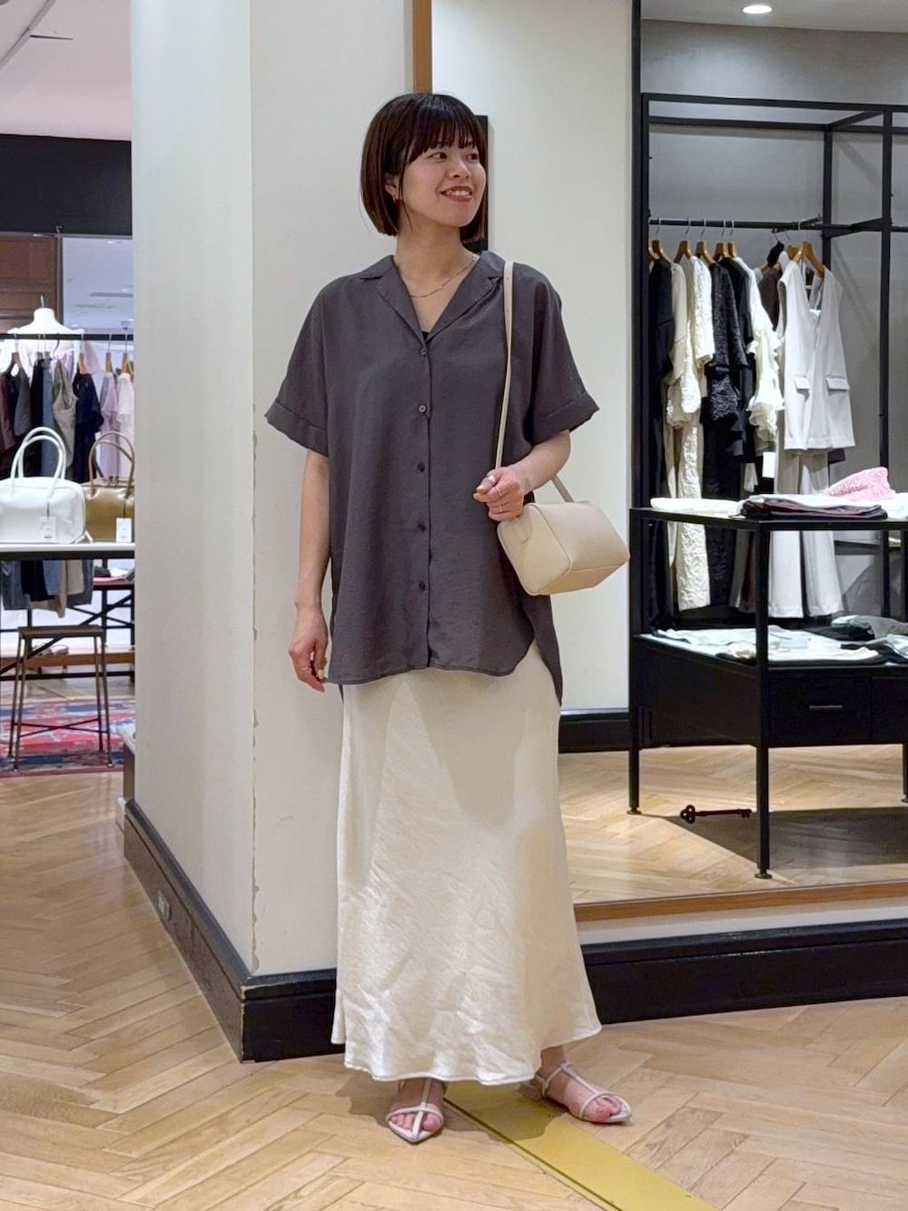 店頭でも大人気コーデ🫶 メンズライクなグレーシャツにツヤ感のあるスカートをあわせて女性らしくコーディネートしました! 小物もアイボリー系でまとめたのもポイント✨ 気になるアイテムらはこちらからご覧いただけます♡ ⇩⇩⇩ぜひチェックしてみてください☺︎