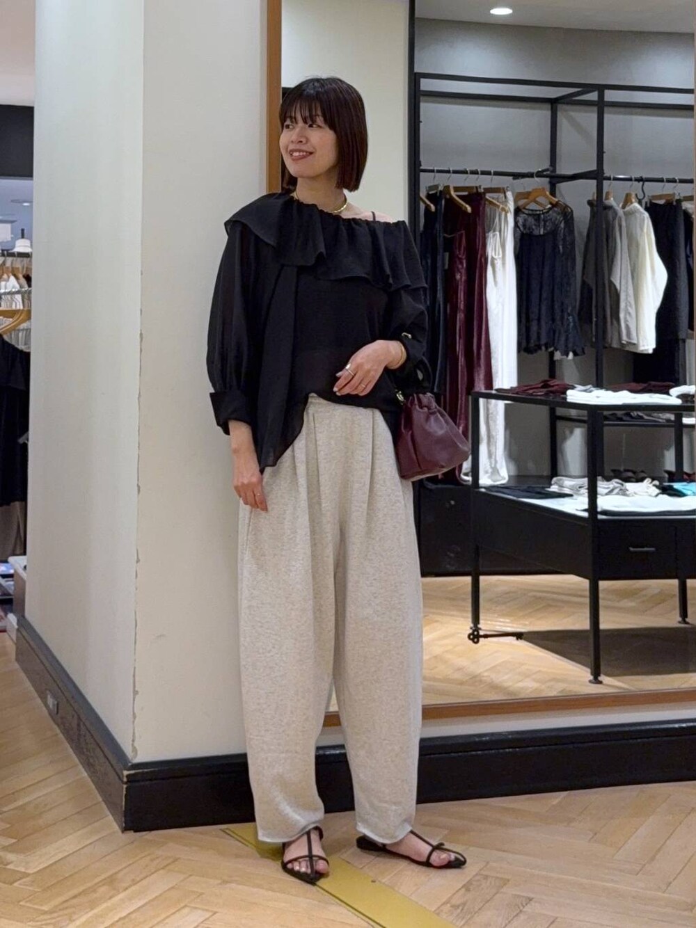 トップス▶︎ オフショル、ワンショルとしても着れます!! 首元のフリル感がアクセントになり、大人かわいい♡ 甘めが苦手な方は黒だと挑戦しやすくオススメです✨ パンツ▶︎ ほどよいコクーンシルエットがかわいいスウェットパンツ! ウエストはオールゴムで履きやすさも◎ 高身長さんでも着丈気にならずでした。 気になるアイテムはこちらからご覧いただけます♡ ⇩⇩⇩ぜひチェックしてみてください☺︎