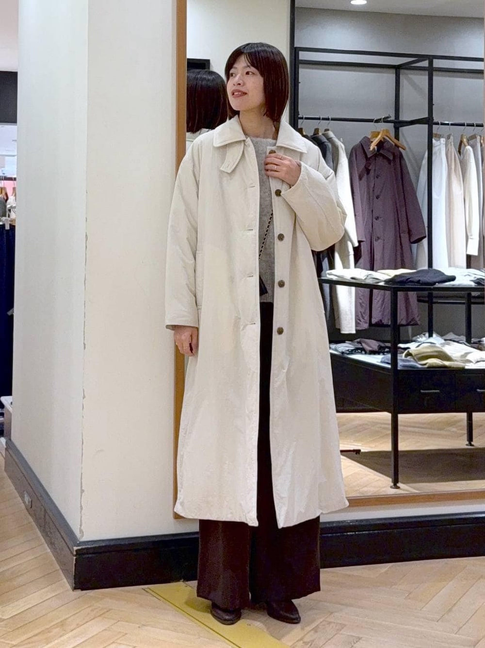 【アウター】 軽くてあたたかいエアーサーマルシリーズ! スタンドカラーになるのも今年ぽい♡ 撥水加工つき☃️ 【WEB限定ニット】 シンプルであわせやすいデザインが着回し力高め🧶 ヒップ隠れる着丈で安心感もあります!! 【パンツ】 サラサラとした履き心地でオールシーズン対応可! ウエストは後のみゴム仕様で履きやすさも◎ 170cmの私でも着丈長めに履けて嬉しい♡ 着用アイテムはこちらからご覧いただけます♡ ⇩⇩⇩ぜひチェックしてみてください☺︎