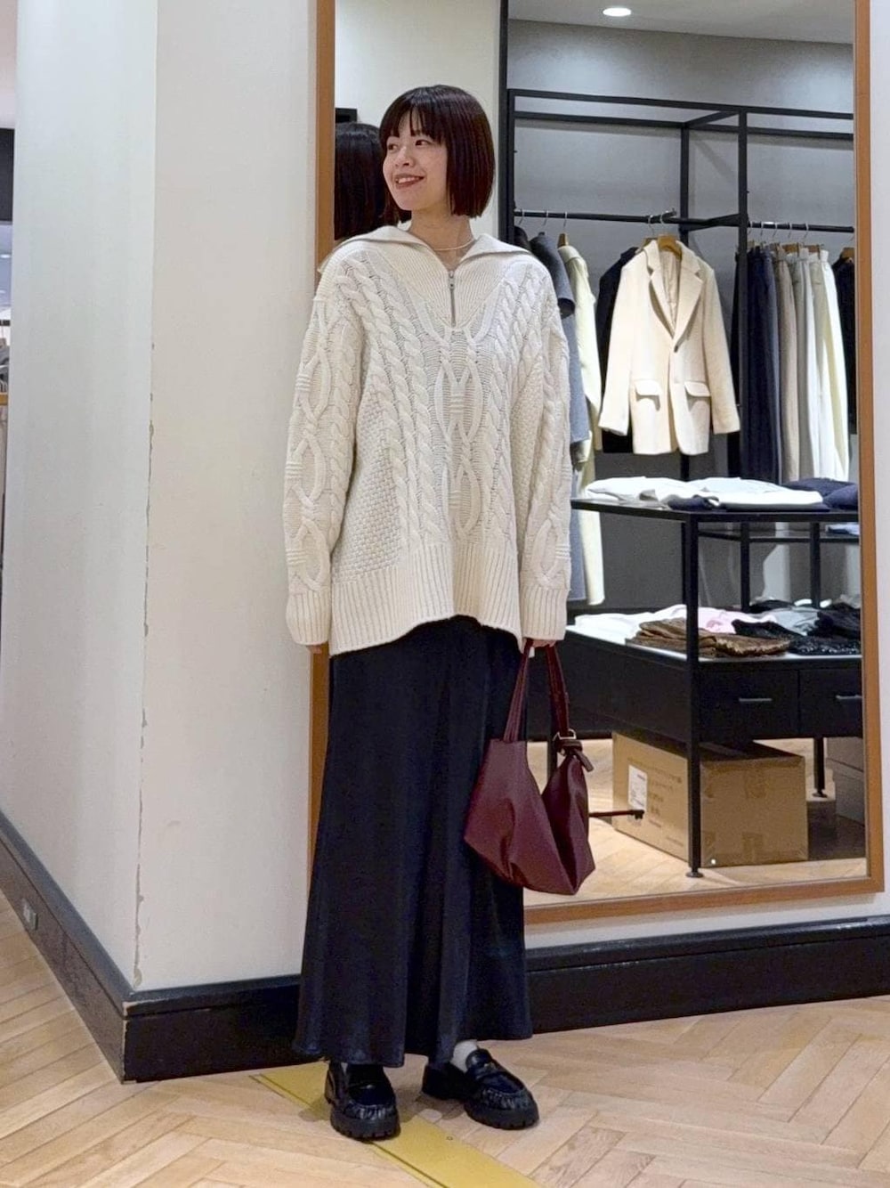 【ニット】サイズ…F ケーブル編みが主役級ニット! 着丈が長めなので細身スカートやパンツスタイルにも◎ 【スカート】サイズ…M ツヤ感のある素材で普段使い〜きれいめシーンまで幅広く活躍します✨ 見た目以上に足さばきもしやすく動きやすさも◎ 着用アイテムはこちらからご覧いただけます♡ ⇩⇩⇩ぜひチェックしてみてください☺︎