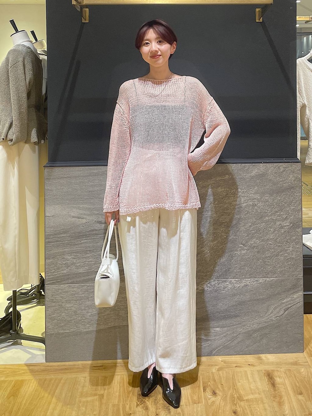 ◯着用アイテムは使用アイテムから購入できます! ・トップス 毎年大人気のあみあみニット リネン混でさらっと肌離れの良い素材、身幅はゆとりがあり長袖ロンTを重ねられます✨ インナー次第で春から夏まで長く着られます! ・パンツ(Mサイズ) 光沢が綺麗なハイウエストパンツ! 後ろゴムで伸縮性◎ベルトで調整できるのが嬉しい 着丈はMサイズは踝に被る長さです! 【スタッフボードのフォローをお願いします!】 コーディネートを気に入って頂けたら、お気に入り登録をお願いします^ ^
