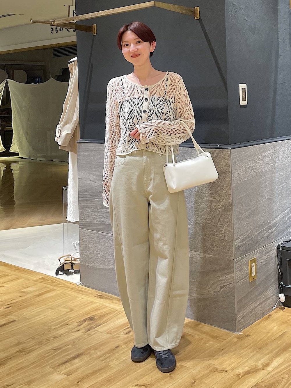 ◯着用アイテムは使用アイテムから購入できます! リアルバイコーデ💛🤍 ・カーディガン 麻混ですが、肌触りの柔らかいレースカーディガン ショート丈でスッキリ着られるが嬉しい♡ コクーンシルエットやハイウエストのスカートで合わせるのがお気に入りです! 肌寒いときは薄手のロンTを重ねて愛用しています! ・デニムパンツ(Mサイズ) お気に入りで2色買いしたコクーンデニム とにかくシルエットがきれい!ボリュームはあるのに足長に見えるデザイン✨ コクーンシルエットなのでお尻や脚ラインも拾わない! 優秀です!!! Mサイズは着丈も長めなので168cmで踝下まである長さです! 【スタッフボードのフォローをお願いします!】 コーディネートを気に入って頂けたら、お気に入り登録をお願いします^ ^