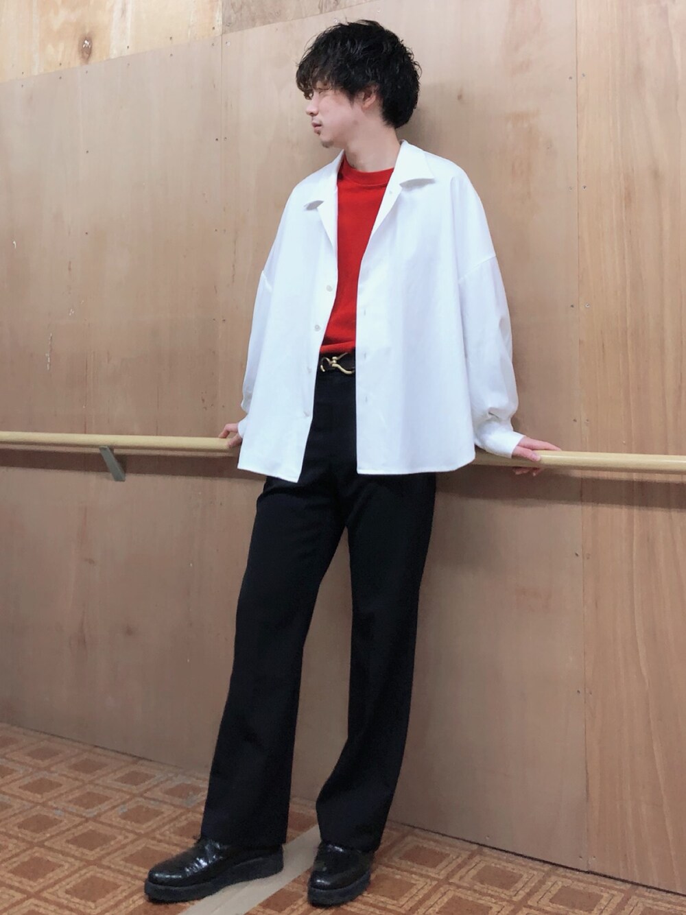 シルエットが絶妙すぎる白シャツとめちゃくちゃスタイル良く見えるフレアパンツ😊 Tops:SuperNova. Inner:JournalStandard Bottoms:sullen tokyo Belt:TORY LEATHER Shoes:PADRONE