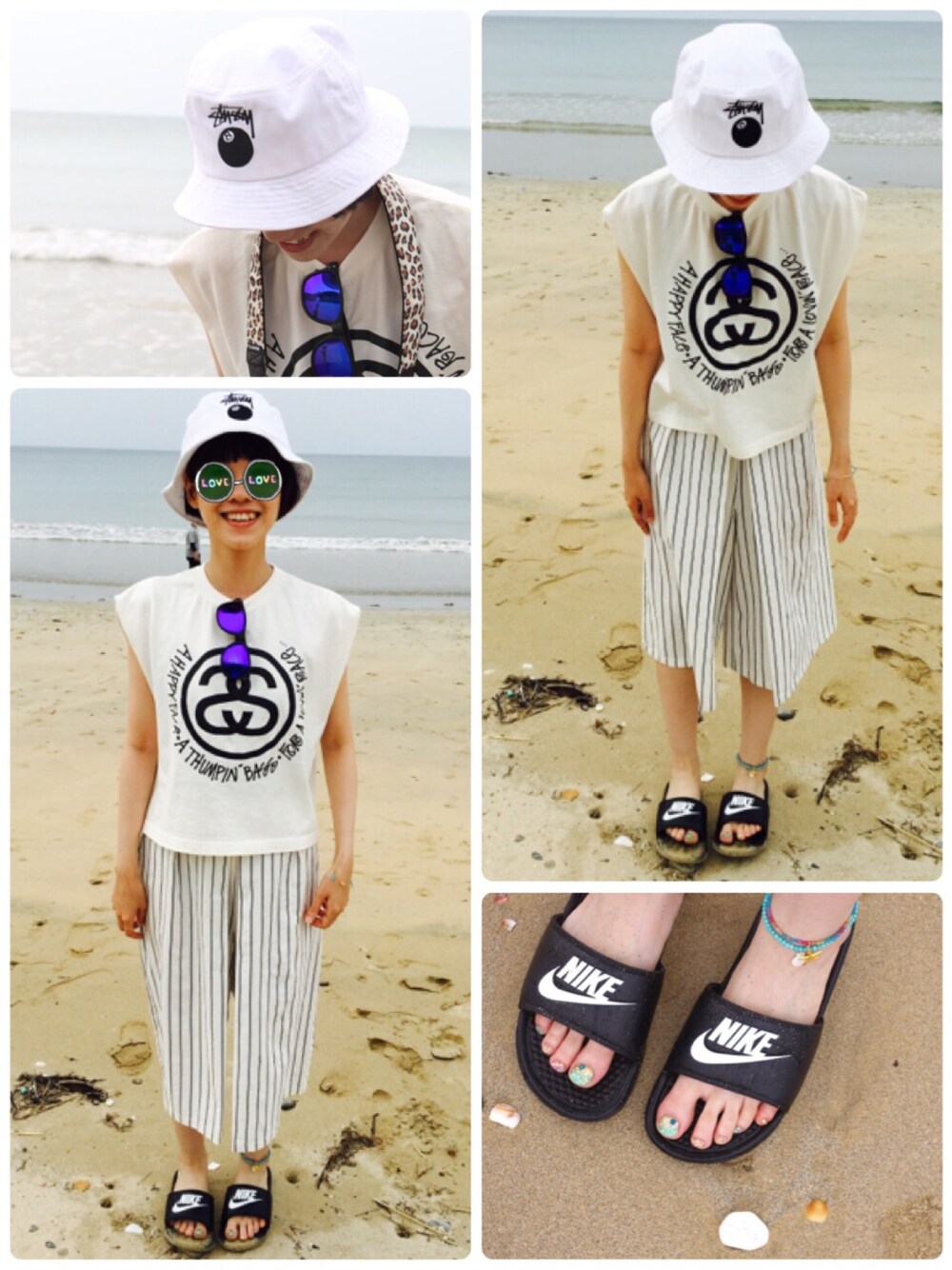 海コーデ!⚓🔱🌊 なんか最近 前よりも アップした画像の画質の低下が激しい気がする…('・_・`) プチ旅行二日目、デニムのハーフパンツを持って行ってたけどベルトを忘れてどうにもならず、急遽間に合わせに現地で買った安物のガウチョパンツが結果いい感じ!\(^o^)/♡笑