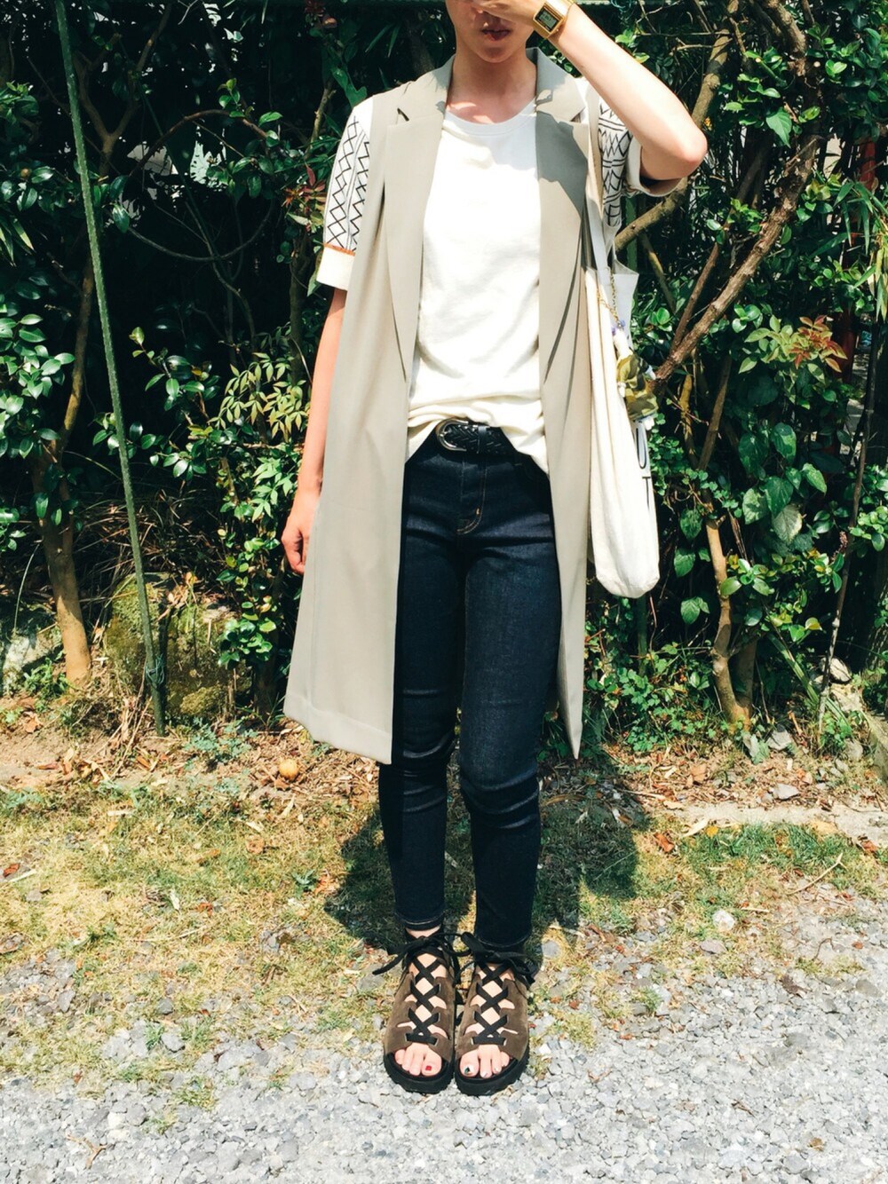 袖がニットのUT990円☺️ ベストに合わせようと思って買ったので着てみました~ アンクル丈スキニーもUNIQLOなので 今日もほぼUNIQLOこーで。笑