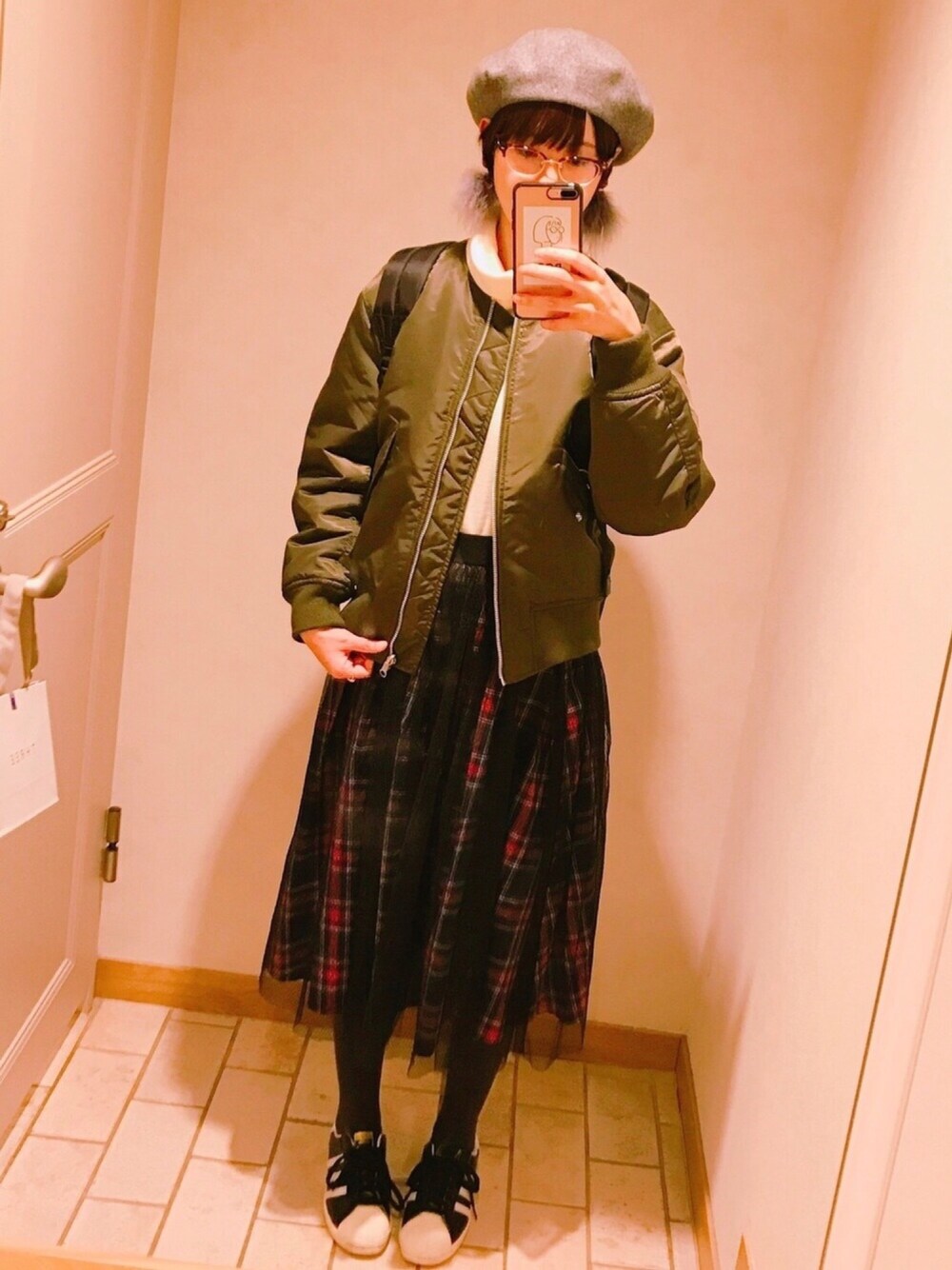 ハンドメイドブランドのファーイヤリングを初おろし。 インナーとMA-1とグレーのヒートテックタイツは安定のUNIQLO。 このインナー年末セールで990円やったけど素材感サイズ感よくて使える…!ほかの色もまだあったら買おうかな、。