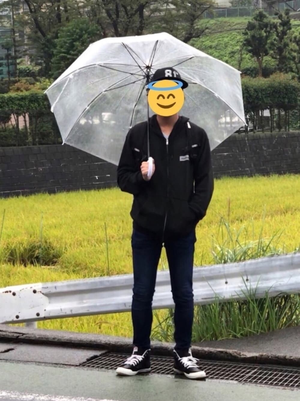 パーカーはLを着用しています[スウェットフルジップパーカー](特注ver) 今回はTシャツ作成者本人が着ています。 普段からネットでの購入をしているのですが思っているより青すぎたスキニーなんですが外の明かりで良い色を出してて驚きました。