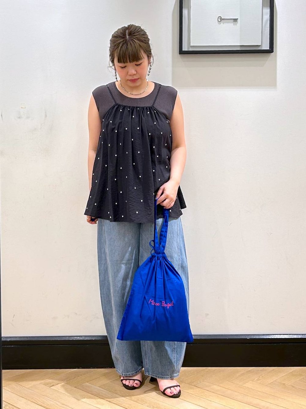 体型カバーしてくれるふんわり素材のドットキャミです ◡̈ デニムとの相性も良く使いやすい! シンプルになりがちな夏のお洋服に合わせやすいです!! トートバッグはカラーが3色あり、ブルーは刺繍のカラーも可愛い♥ 着ているアイテムはこの下から見れますのでぜひこちらからご覧頂けると嬉しいです♡ ⇩⇩⇩